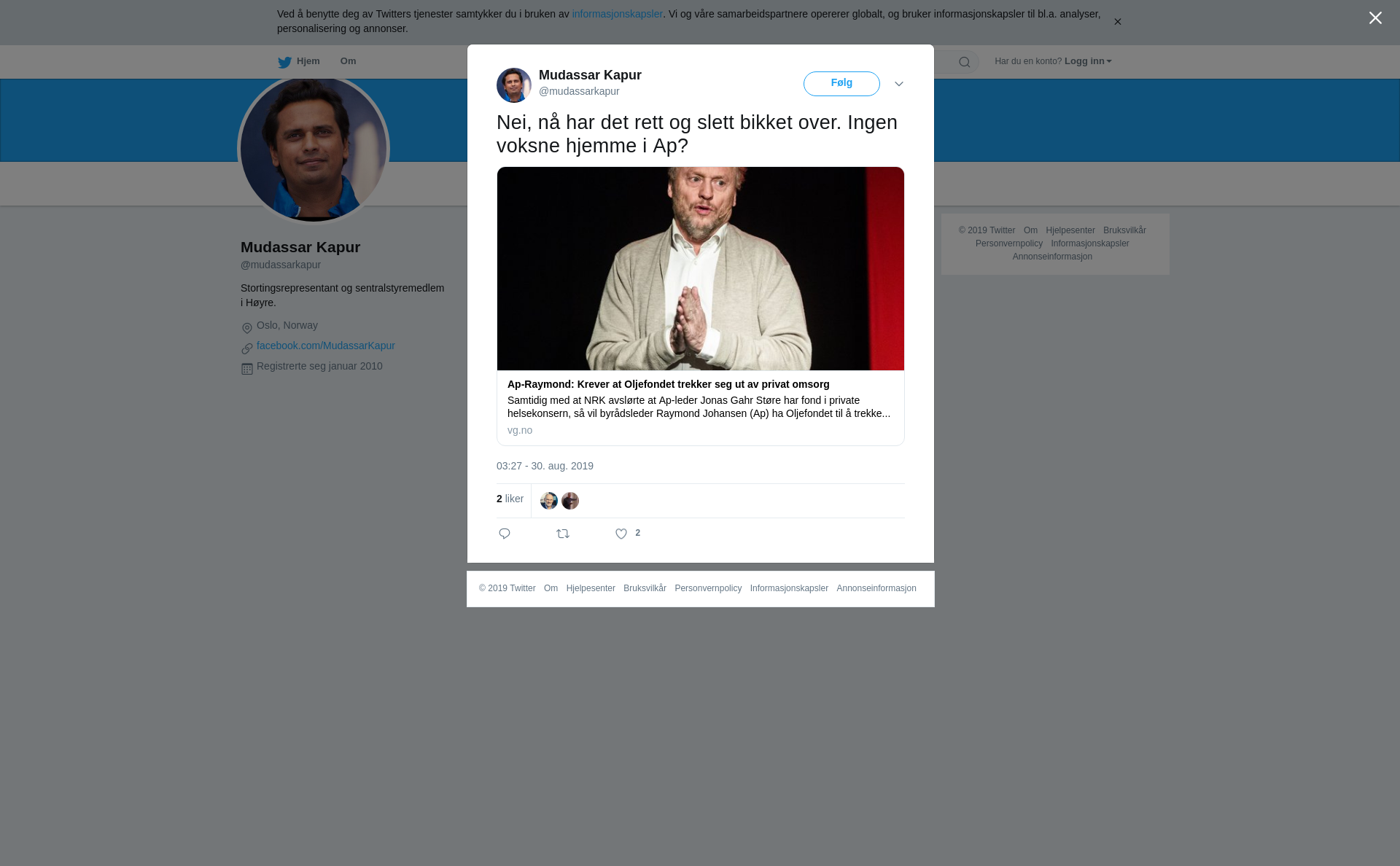 Ap-Raymond: Krever at Oljefondet trekker seg ut av privat omsorg