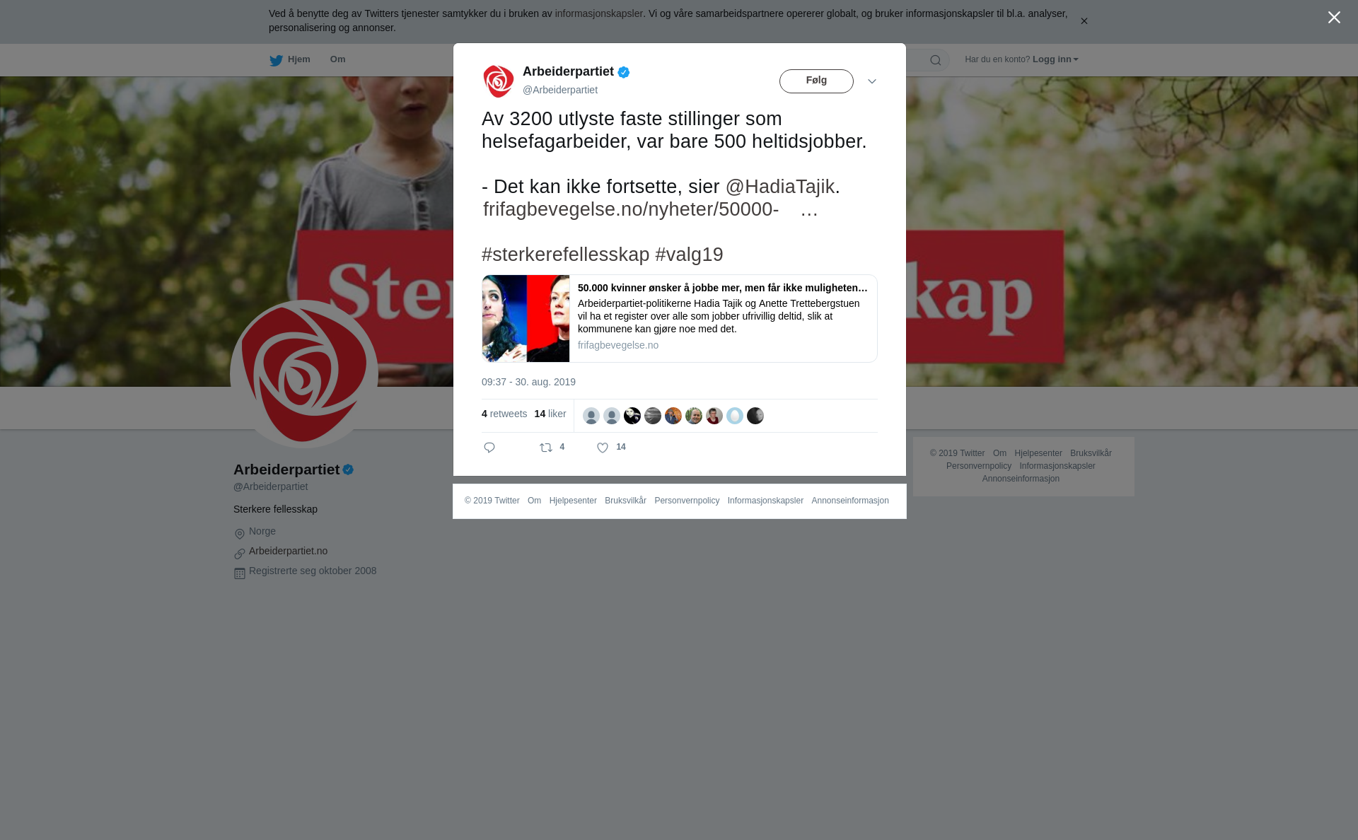 Arbeiderpartiet-politikerne Hadia Tajik og Anette Trettebergstuen vil ha et register over alle som jobber ufrivillig deltid, slik at kommunene kan gjøre noe med det.