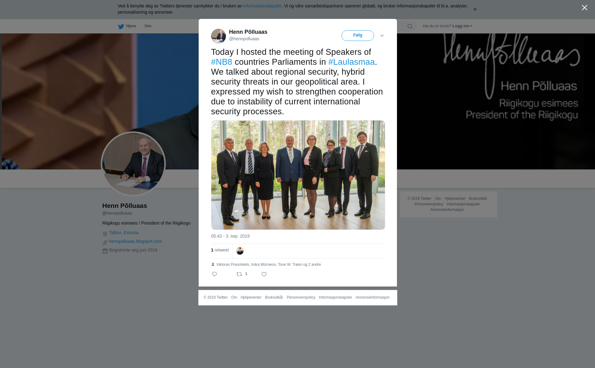 RT @hennpolluaas: Today I hosted the meeting of Speakers of #NB8 countries Parliaments in #Laulasmaa. We talked about regional security, hybrid security threats in our geopolitical area. I expressed my wish to strengthen cooperation due to instability of current international security processes. https://t.co/pKNSTj3MNL