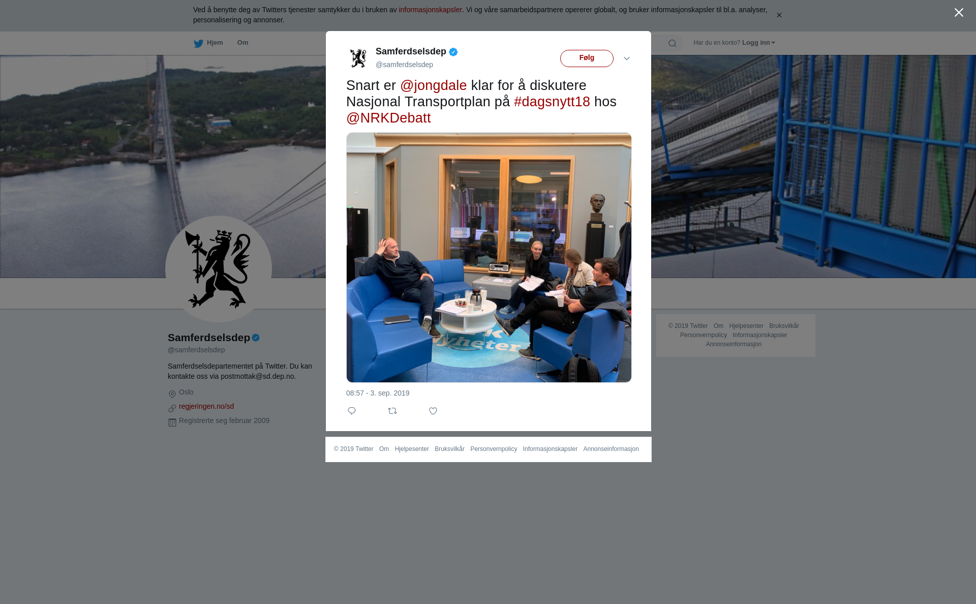 Snart er @jongdale klar for å diskutere Nasjonal Transportplan på #dagsnytt18 hos @NRKDebatt https://t.co/lBuFisBD4B