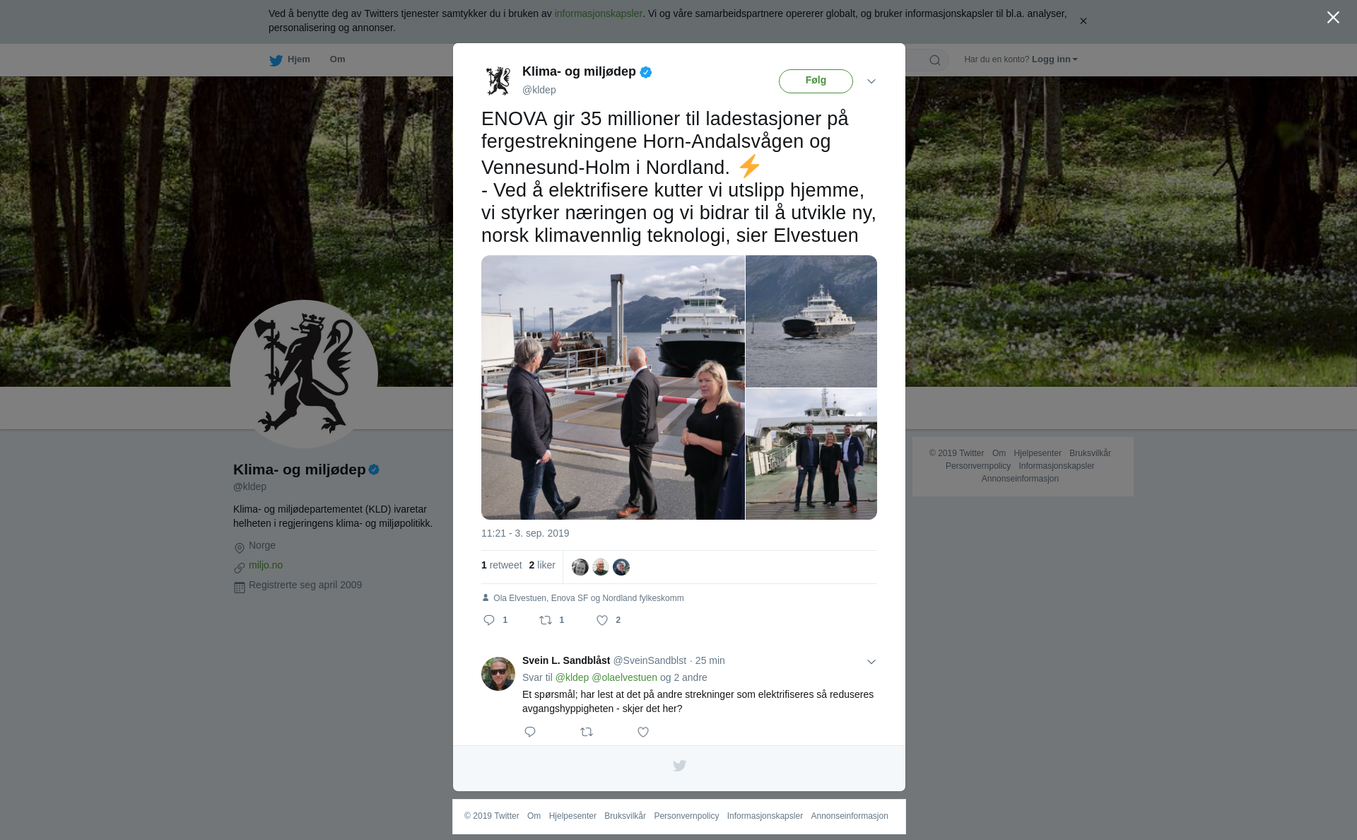 RT @kldep: ENOVA gir 35 millioner til ladestasjoner på fergestrekningene Horn-Andalsvågen og Vennesund-Holm i Nordland. ⚡️ - Ved å elektrif…