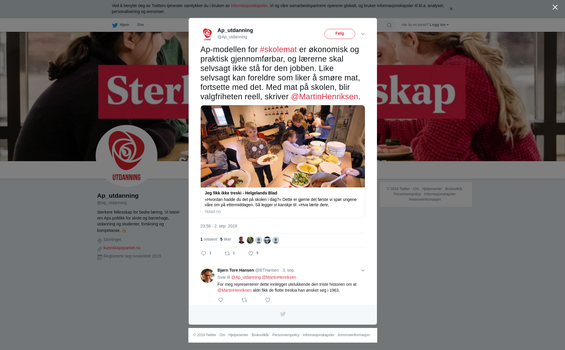RT @Ap_utdanning: Ap-modellen for #skolemat er økonomisk og praktisk gjennomførbar, og lærerne skal selvsagt ikke stå for den jobben. Like selvsagt kan foreldre som liker å smøre mat, fortsette med det. Med mat på skolen, blir valgfriheten reell, skriver @MartinHenriksen. https://t.co/DFyxNp8pZq