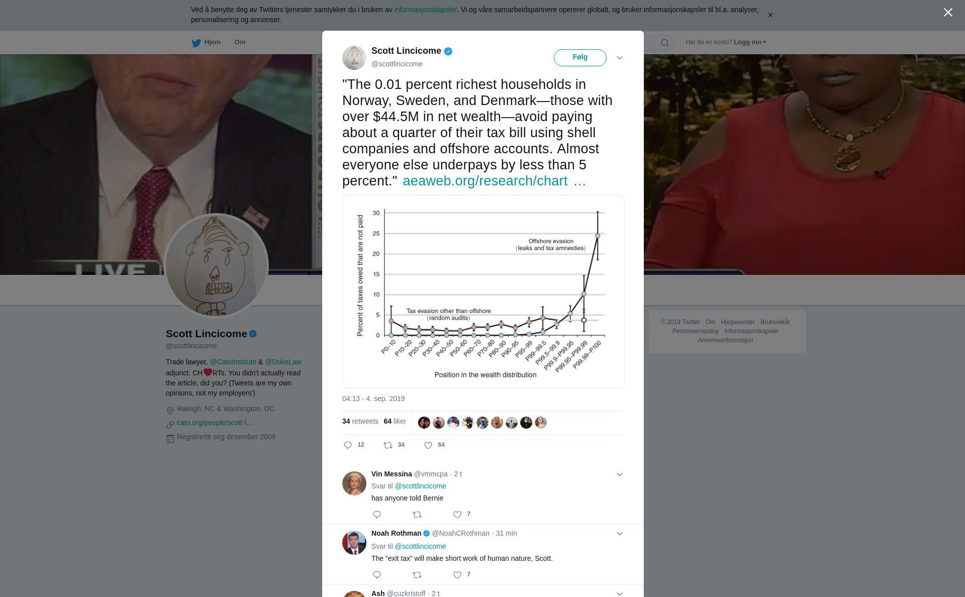 RT @scottlincicome: "The 0.01 percent richest households in Norway, Sweden, and Denmark—those with over $44.5M in net wealth—avoid paying about a quarter of their tax bill using shell companies and offshore accounts. Almost everyone else underpays by less than 5 percent." https://t.co/wkyXxWsMhl https://t.co/8DRlRiiI77