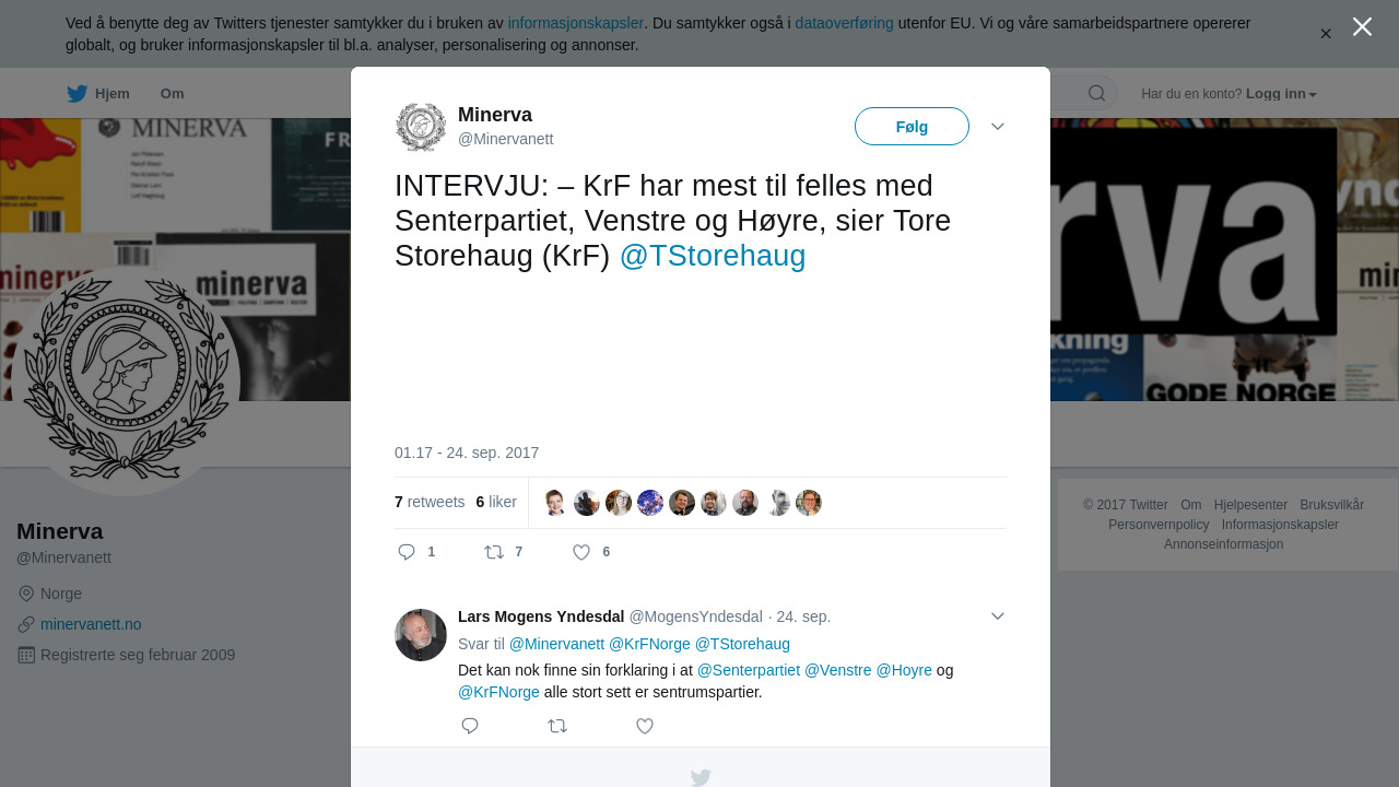 RT @Minervanett: INTERVJU: – KrF har mest til felles med Senterpartiet, Venstre og Høyre, sier Tore Storehaug (KrF) @TStorehaug https://t.co/zklVrKAj9v