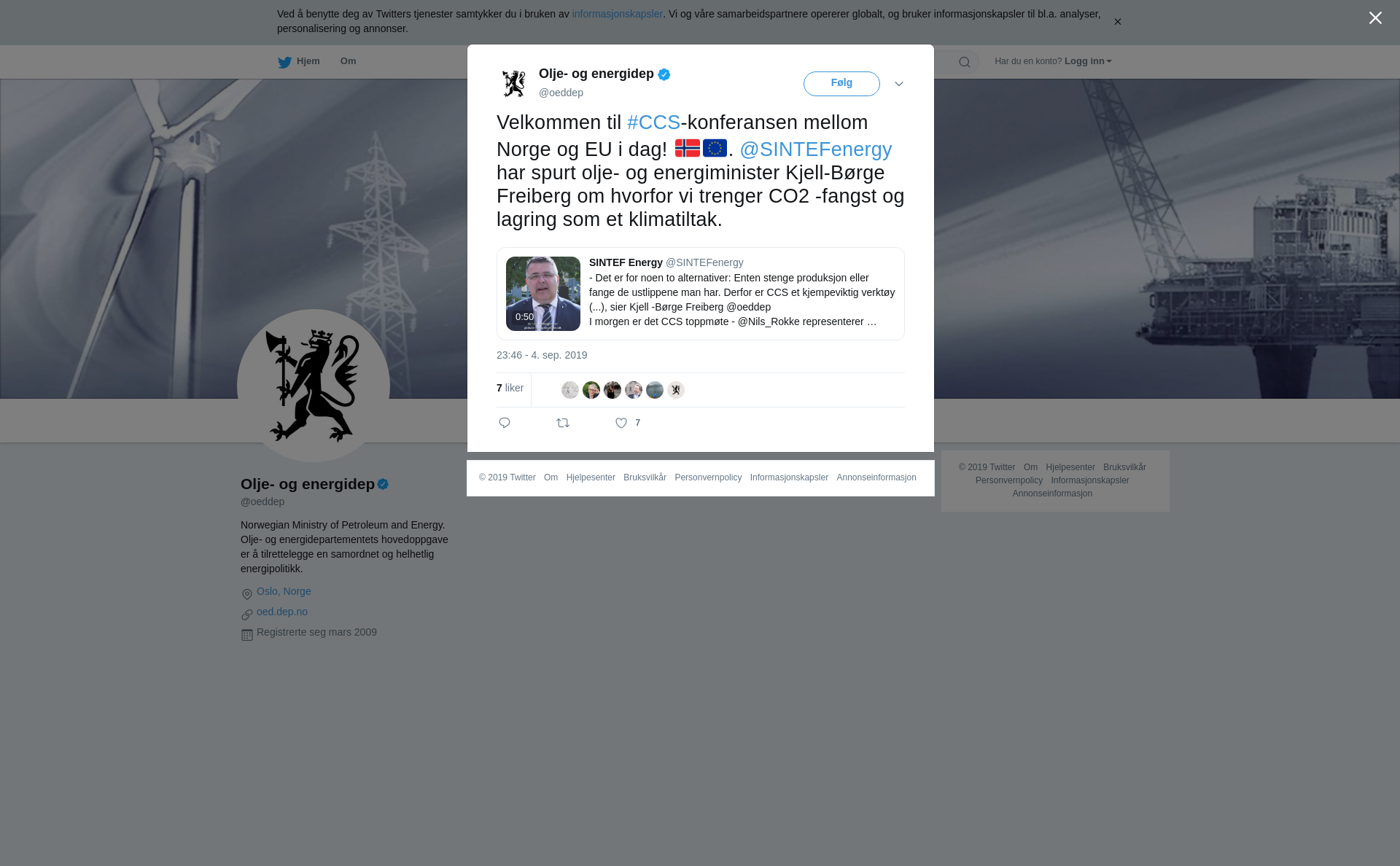 Velkommen til #CCS-konferansen mellom Norge og EU i dag! 🇳🇴🇪🇺. @SINTEFenergy har spurt olje- og energiminister Kjell-Børge Freiberg om hvorfor vi trenger CO2 -fangst og lagring som et klimatiltak.