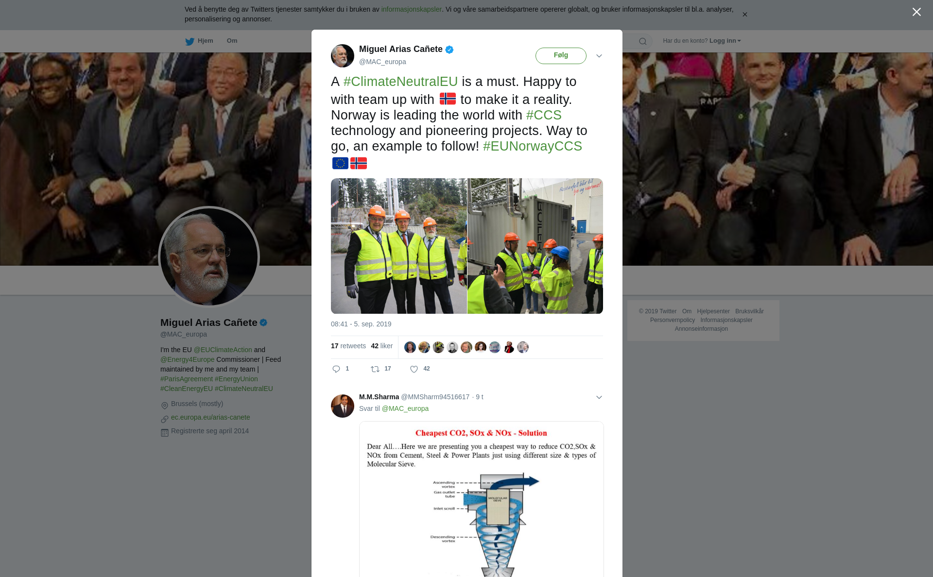 RT @MAC_europa: A #ClimateNeutralEU is a must. Happy to with team up with 🇳🇴 to make it a reality. Norway is leading the world with #CCS technology and pioneering projects. Way to go, an example to follow! #EUNorwayCCS 🇪🇺🇳🇴 https://t.co/HnmULTf3vo