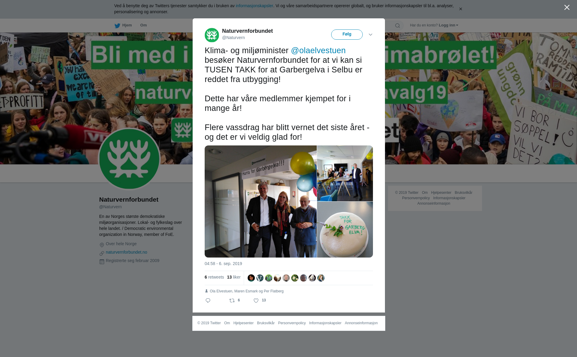 RT @Naturvern: Klima- og miljøminister @olaelvestuen besøker Naturvernforbundet for at vi kan si TUSEN TAKK for at Garbergelva i Selbu er reddet fra utbygging!