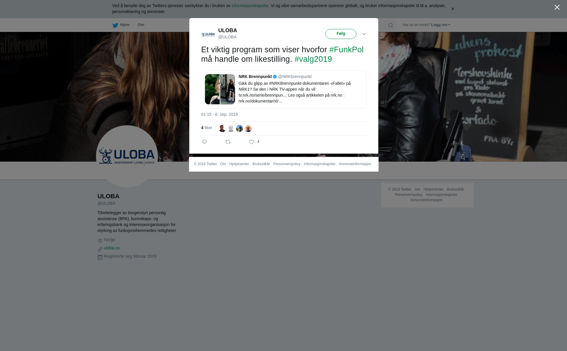 RT @ULOBA: Et viktig program som viser hvorfor #FunkPol må handle om likestilling. #valg2019 https://t.co/3ze6c0owpN