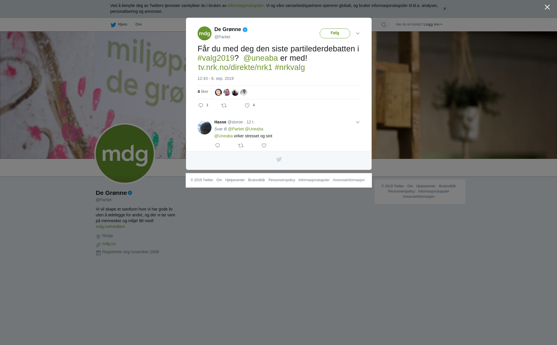 Får du med deg den siste partilederdebatten i #valg2019? @uneaba er med! https://t.co/xUin2jjLA6 #nrkvalg