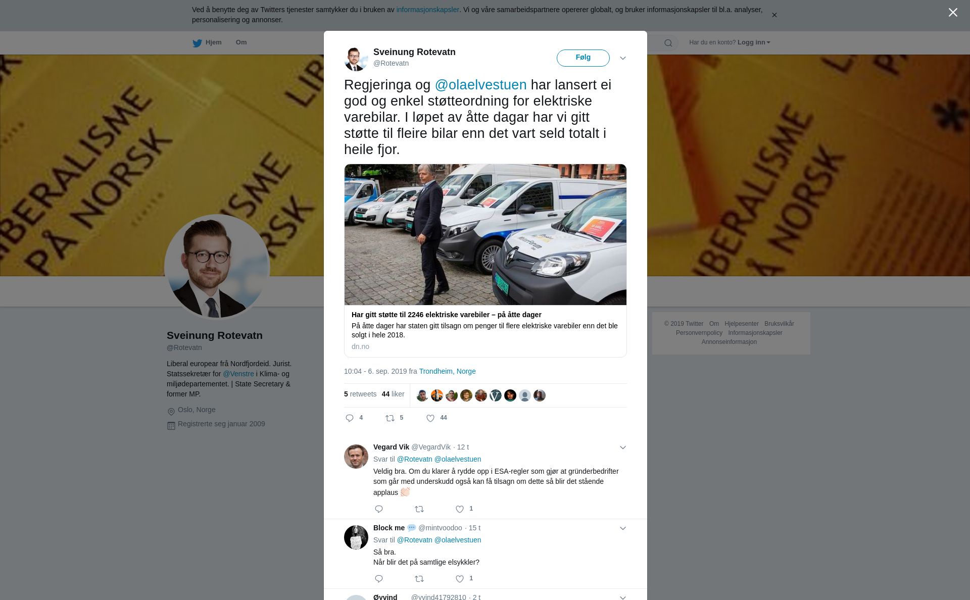 RT @Rotevatn: Regjeringa og @olaelvestuen har lansert ei god og enkel støtteordning for elektriske varebilar. I løpet av åtte dagar har vi gitt støtte til fleire bilar enn det vart seld totalt i heile fjor. https://t.co/Acb7qlra6N