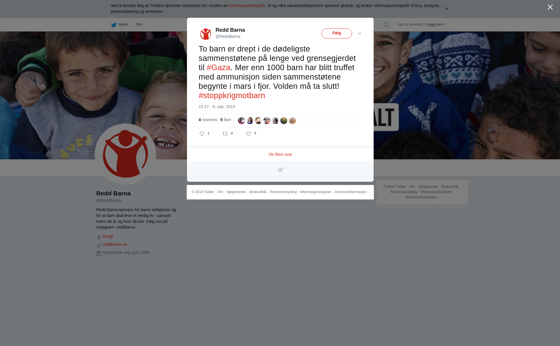 RT @ReddBarna: To barn er drept i de dødeligste sammenstøtene på lenge ved grensegjerdet til #Gaza. Mer enn 1000 barn har blitt truffet med ammunisjon siden sammenstøtene begynte i mars i fjor. Volden må ta slutt! #stoppkrigmotbarn