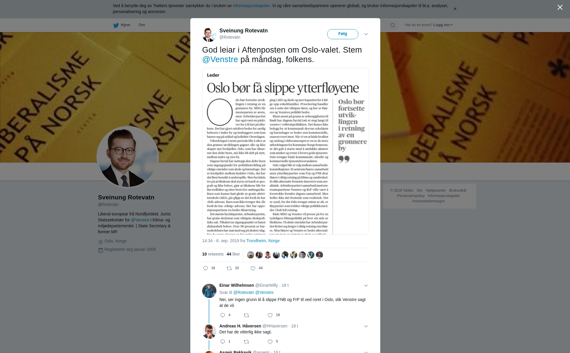 RT @Rotevatn: God leiar i Aftenposten om Oslo-valet. Stem @Venstre på måndag, folkens. https://t.co/LTNL2EGieB