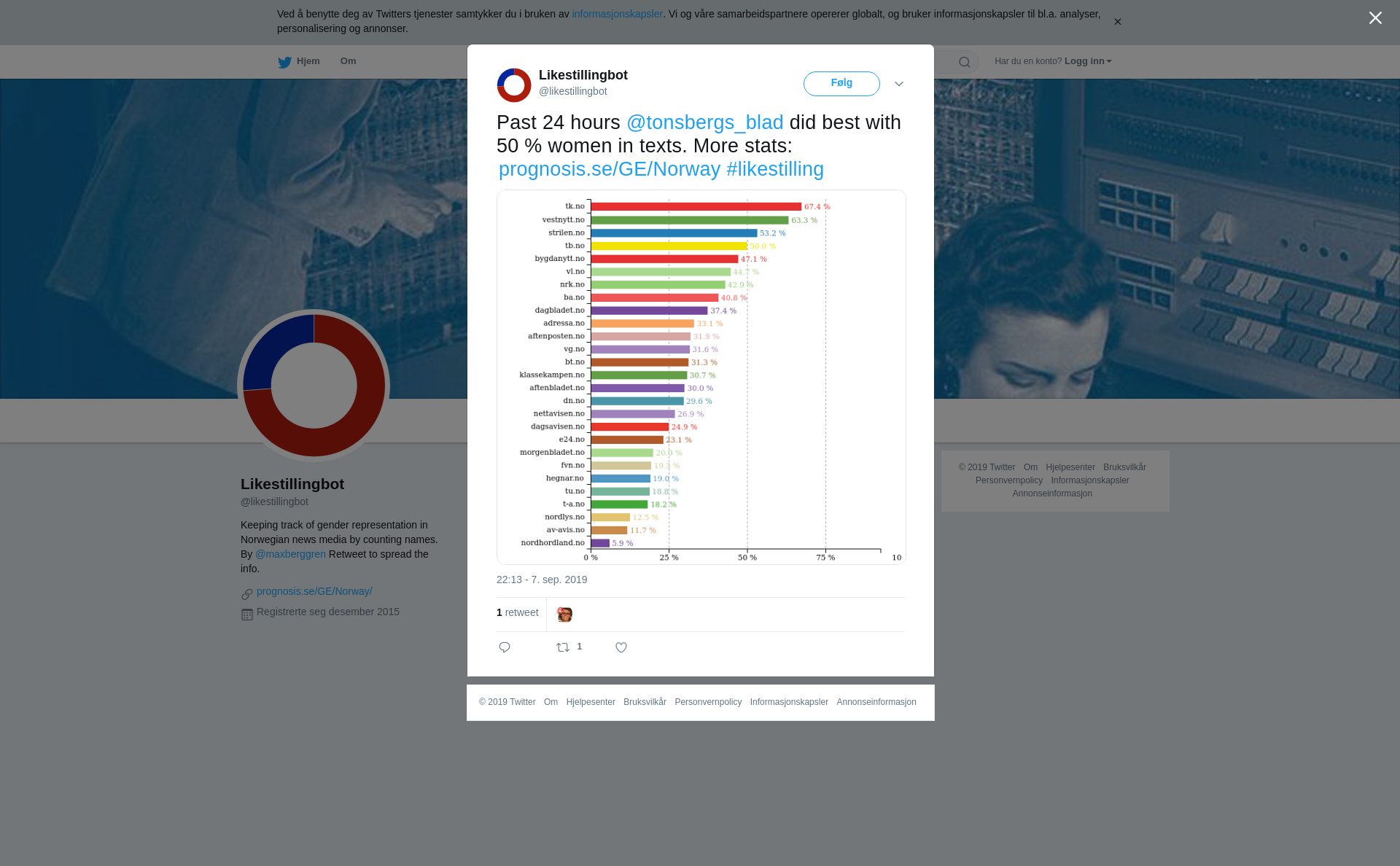 RT @likestillingbot: Past 24 hours @tonsbergs_blad did best with 50 % women in texts. More stats: https://t.co/1YpDvbJ3co #likestilling https://t.co/NVMcDFtHkl