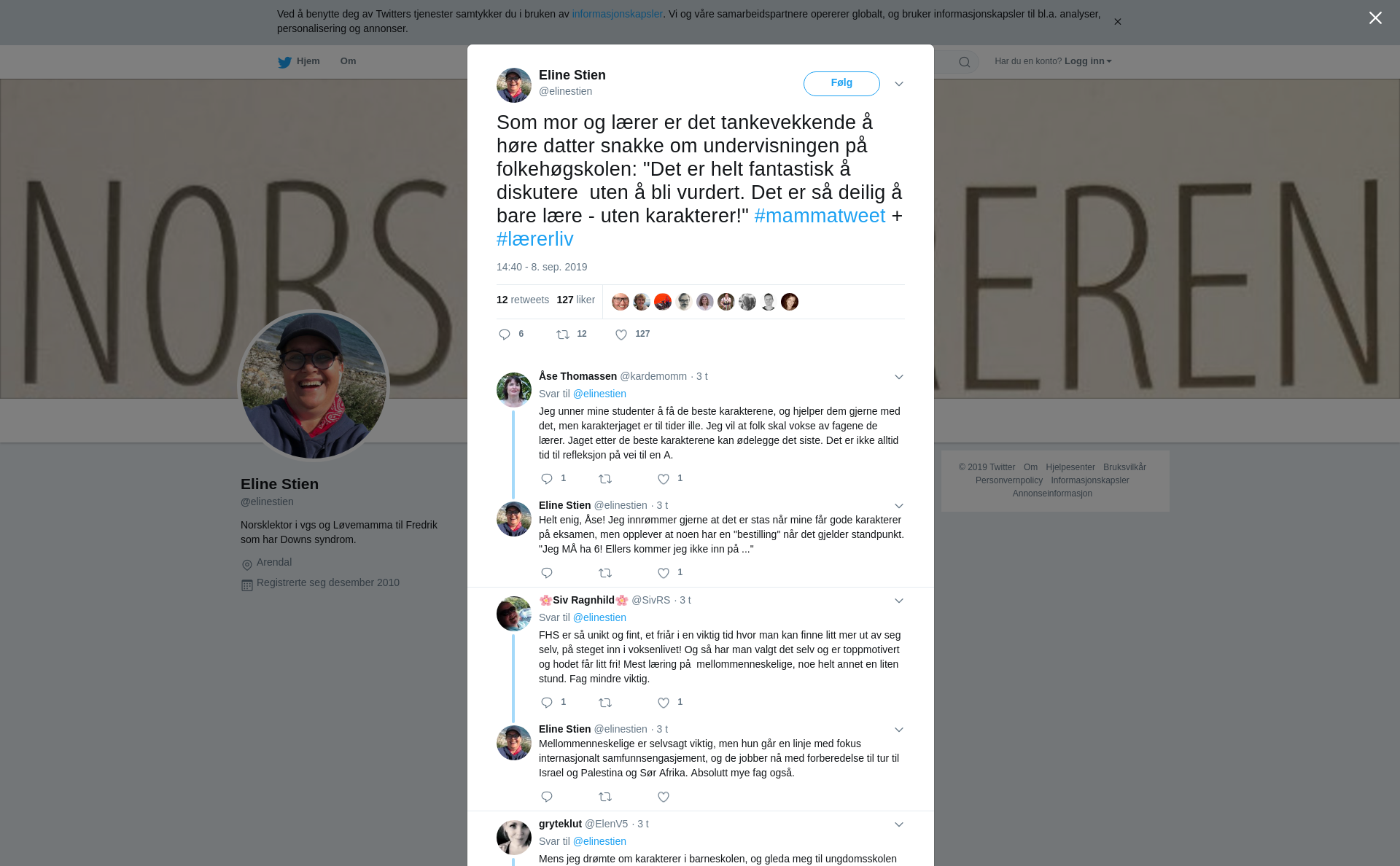 RT @elinestien: Som mor og lærer er det tankevekkende å høre datter snakke om undervisningen på folkehøgskolen: "Det er helt fantastisk å diskutere uten å bli vurdert. Det er så deilig å bare lære - uten karakterer!" #mammatweet + #lærerliv