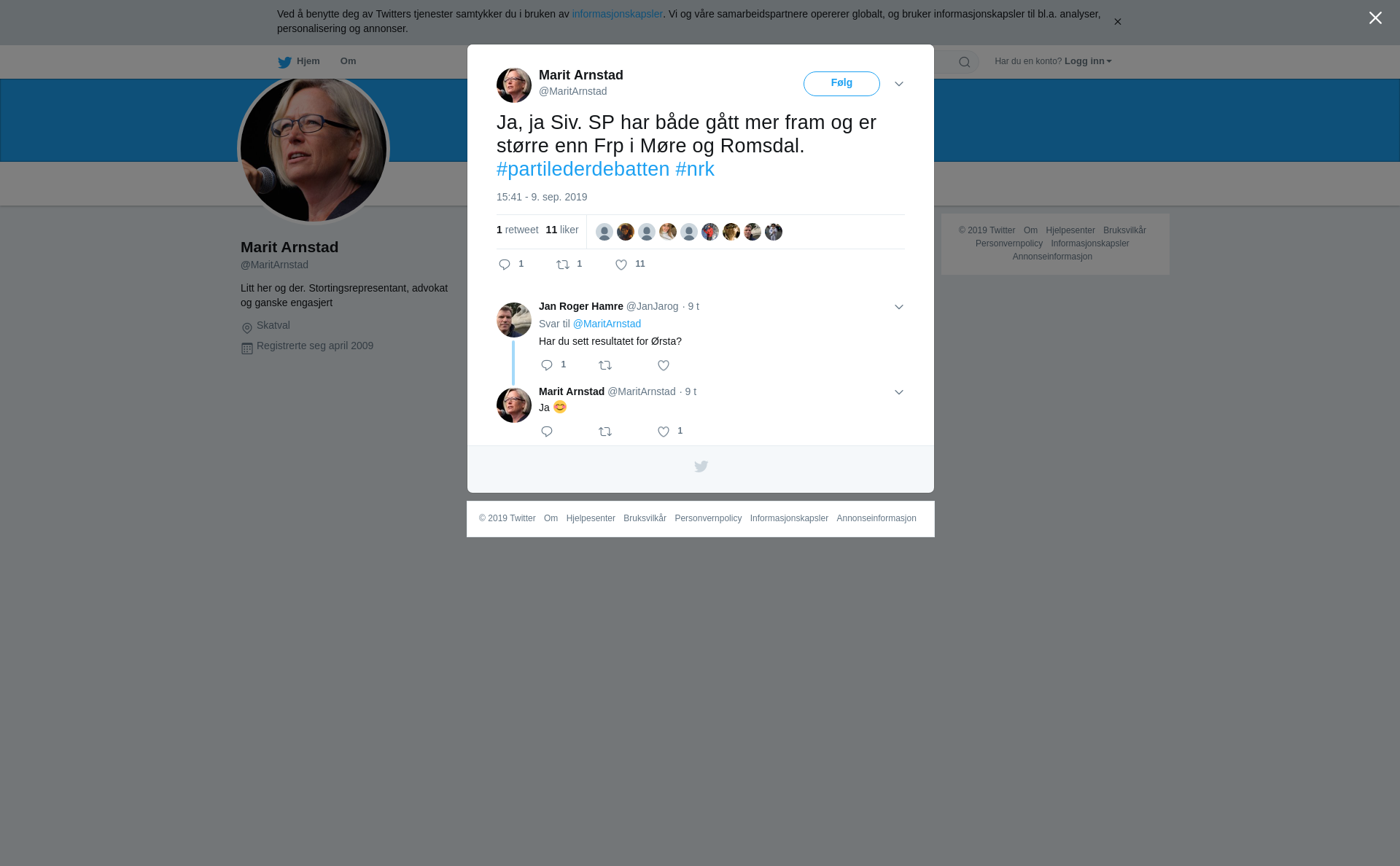 Ja, ja Siv. SP har både gått mer fram og er større enn Frp i Møre og Romsdal. #partilederdebatten #nrk