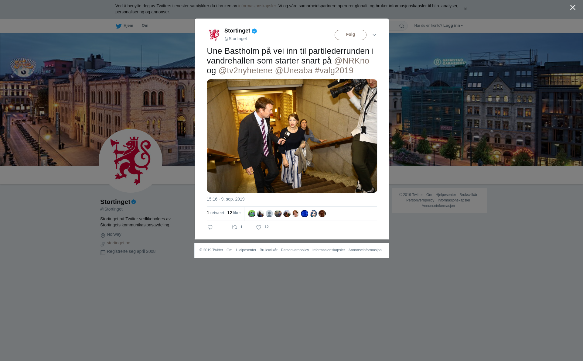 RT @Stortinget: Une Bastholm på vei inn til partilederrunden i vandrehallen som starter snart på @NRKno og @tv2nyhetene @Uneaba #valg2019 https://t.co/guFMxtWhfR
