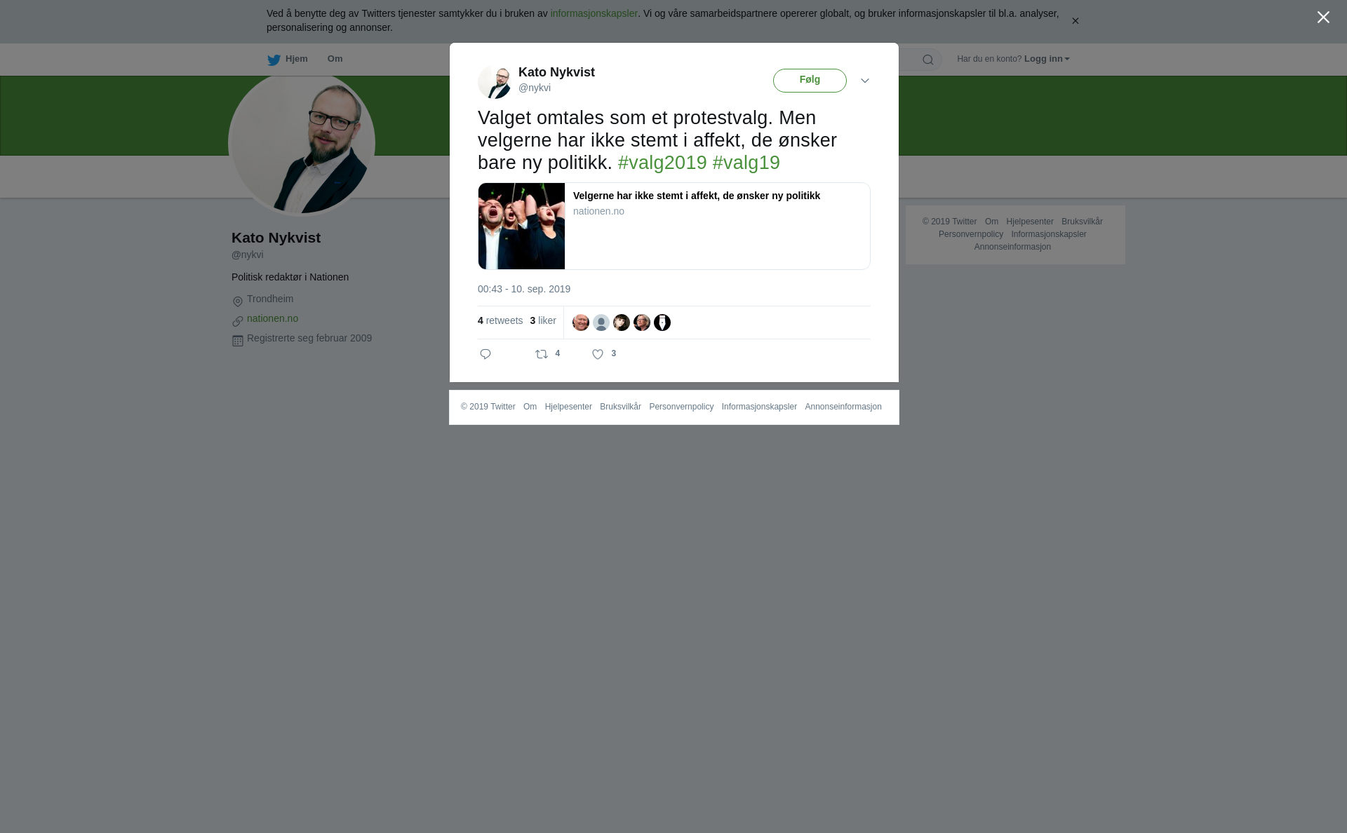 RT @nykvi: Valget omtales som et protestvalg. Men velgerne har ikke stemt i affekt, de ønsker bare ny politikk. #valg2019 #valg19 https://t.co/8e41UBSay3