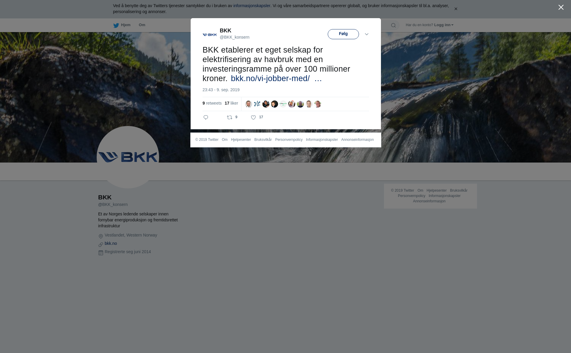 RT @BKK_konsern: BKK etablerer et eget selskap for elektrifisering av havbruk med en investeringsramme på over 100 millioner kroner. https://t.co/AwwofxaKRC