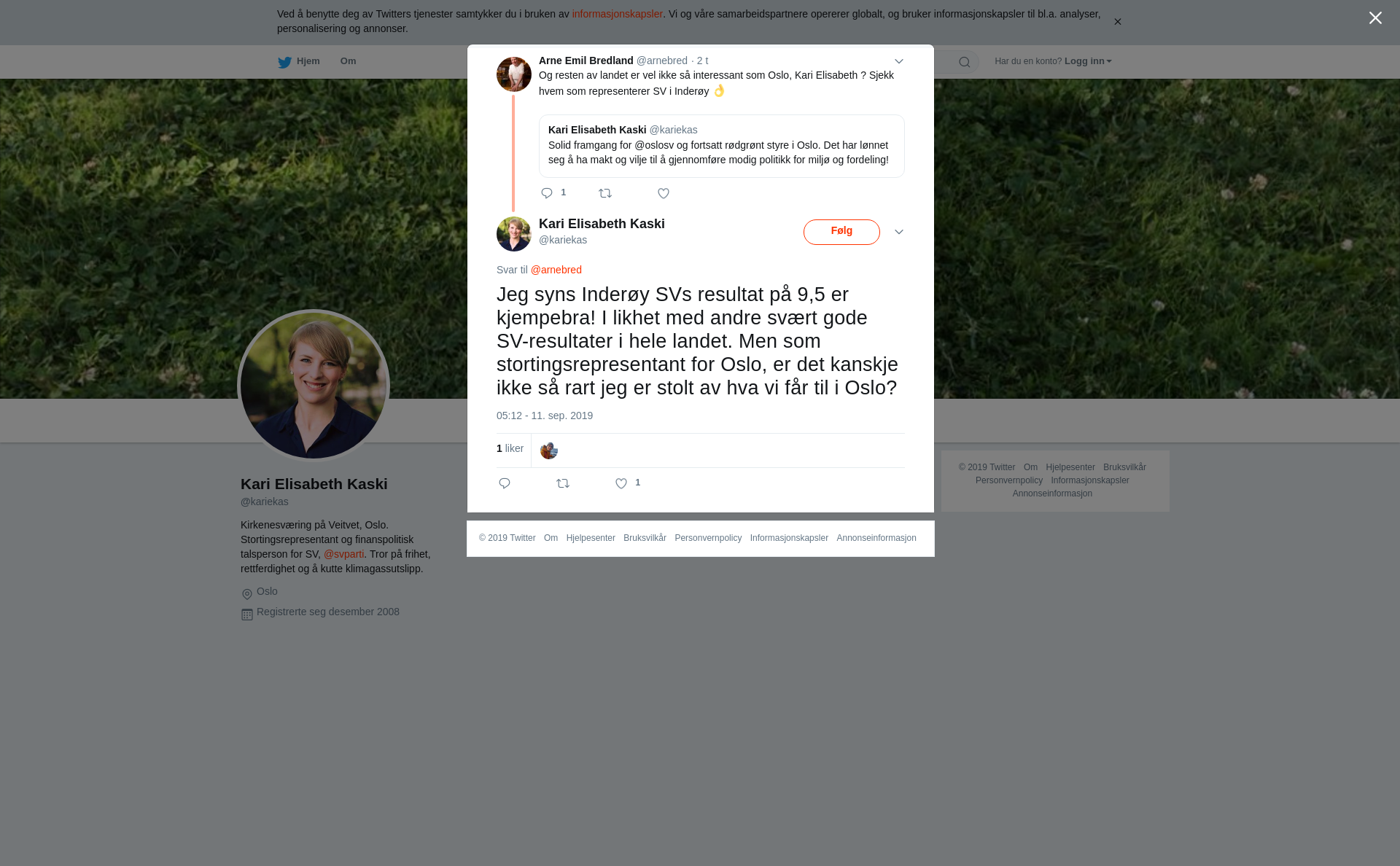 @arnebred Jeg syns Inderøy SVs resultat på 9,5 er kjempebra! I likhet med andre svært gode SV-resultater i hele landet. Men som stortingsrepresentant for Oslo, er det kanskje ikke så rart jeg er stolt av hva vi får til i Oslo?