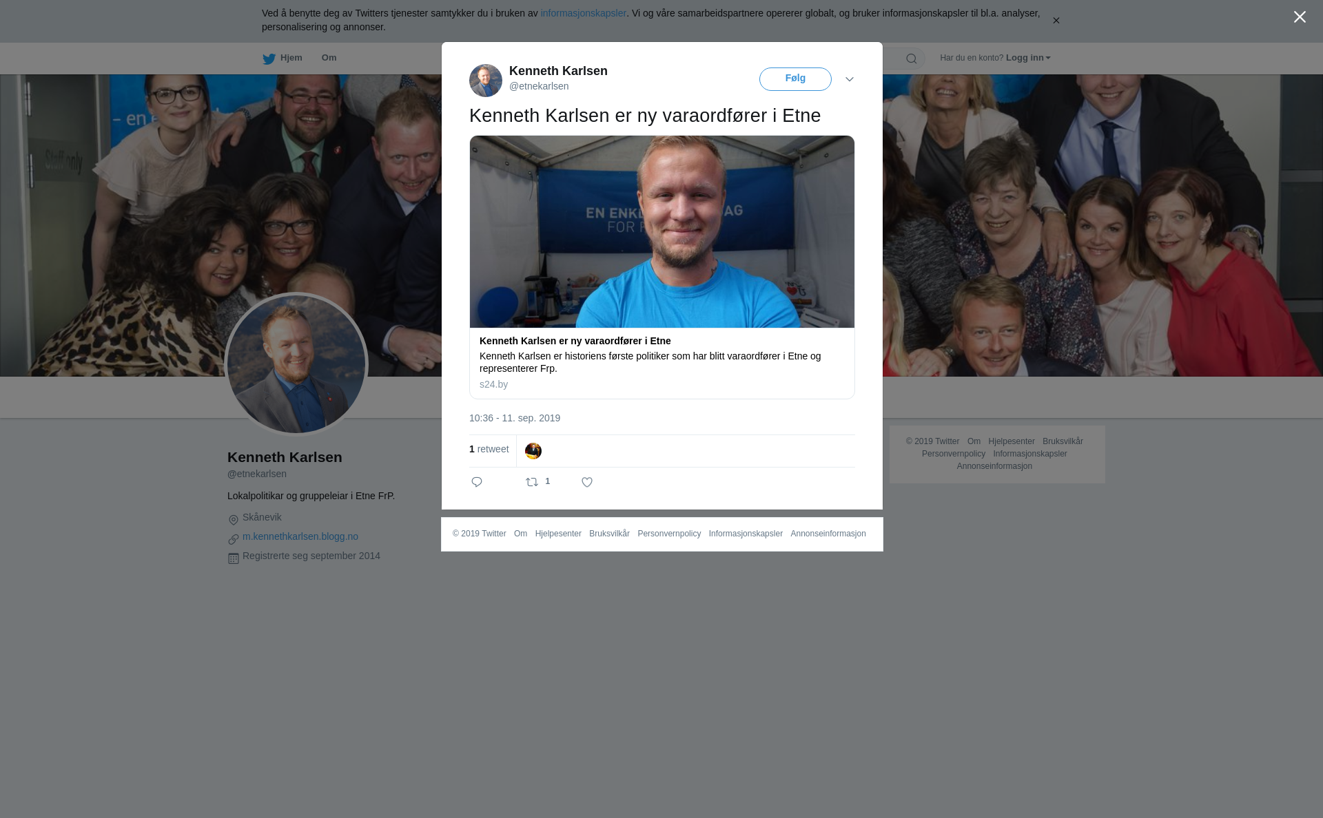 RT @etnekarlsen: Kenneth Karlsen er ny varaordfører i Etne https://t.co/vIBBn7c48c
