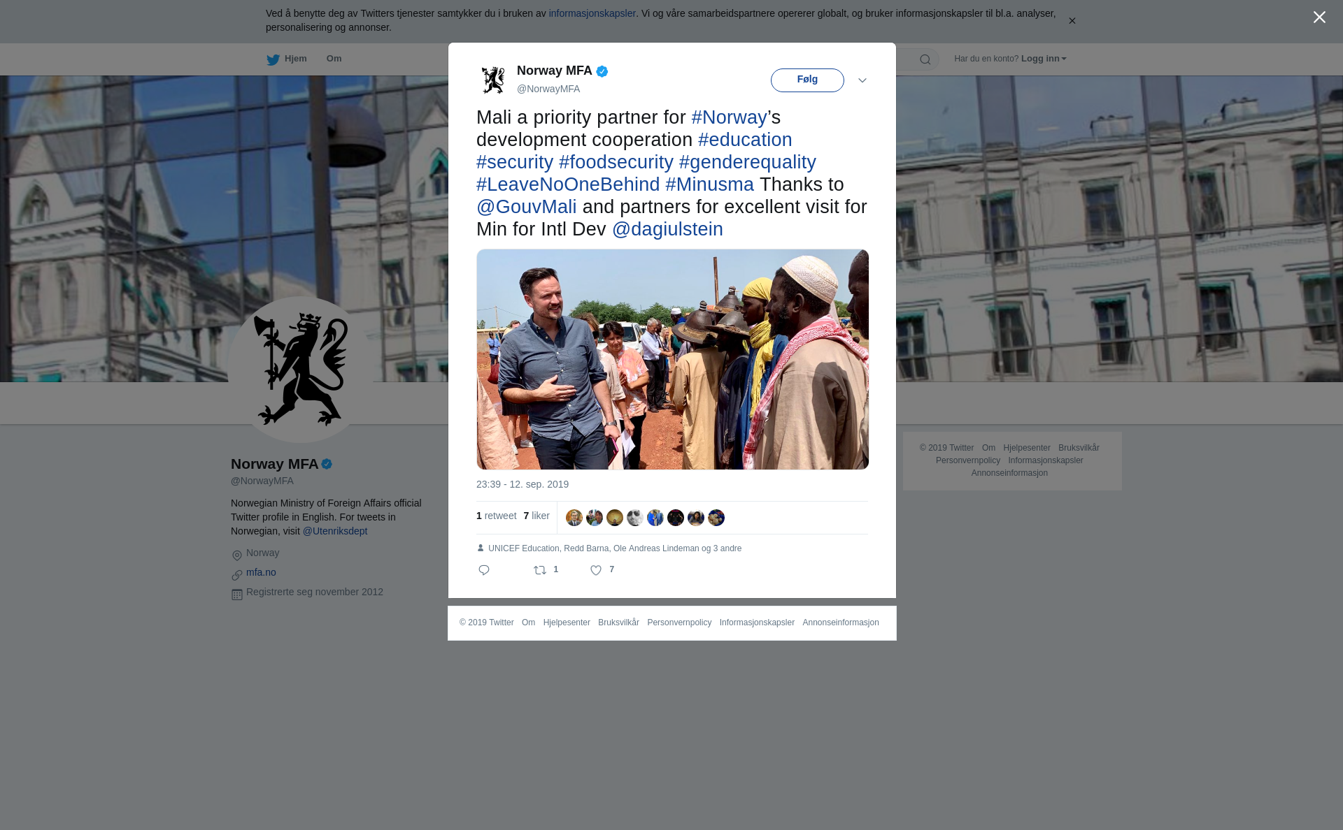 Mali a priority partner for #Norway’s development cooperation #education #security #foodsecurity #genderequality #LeaveNoOneBehind #Minusma Thanks to @GouvMali and partners for excellent visit for Min for Intl Dev @dagiulstein https://t.co/d3zbJ5b0qS