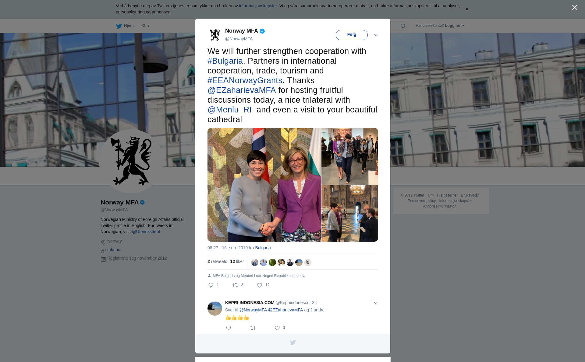 We will further strengthen cooperation with #Bulgaria. Partners in international cooperation, trade, tourism and #EEANorwayGrants. Thanks @EZaharievaMFA for hosting fruitful discussions today, a nice trilateral with @Menlu_RI and even a visit to your beautiful cathedral https://t.co/CqxmgZw06O