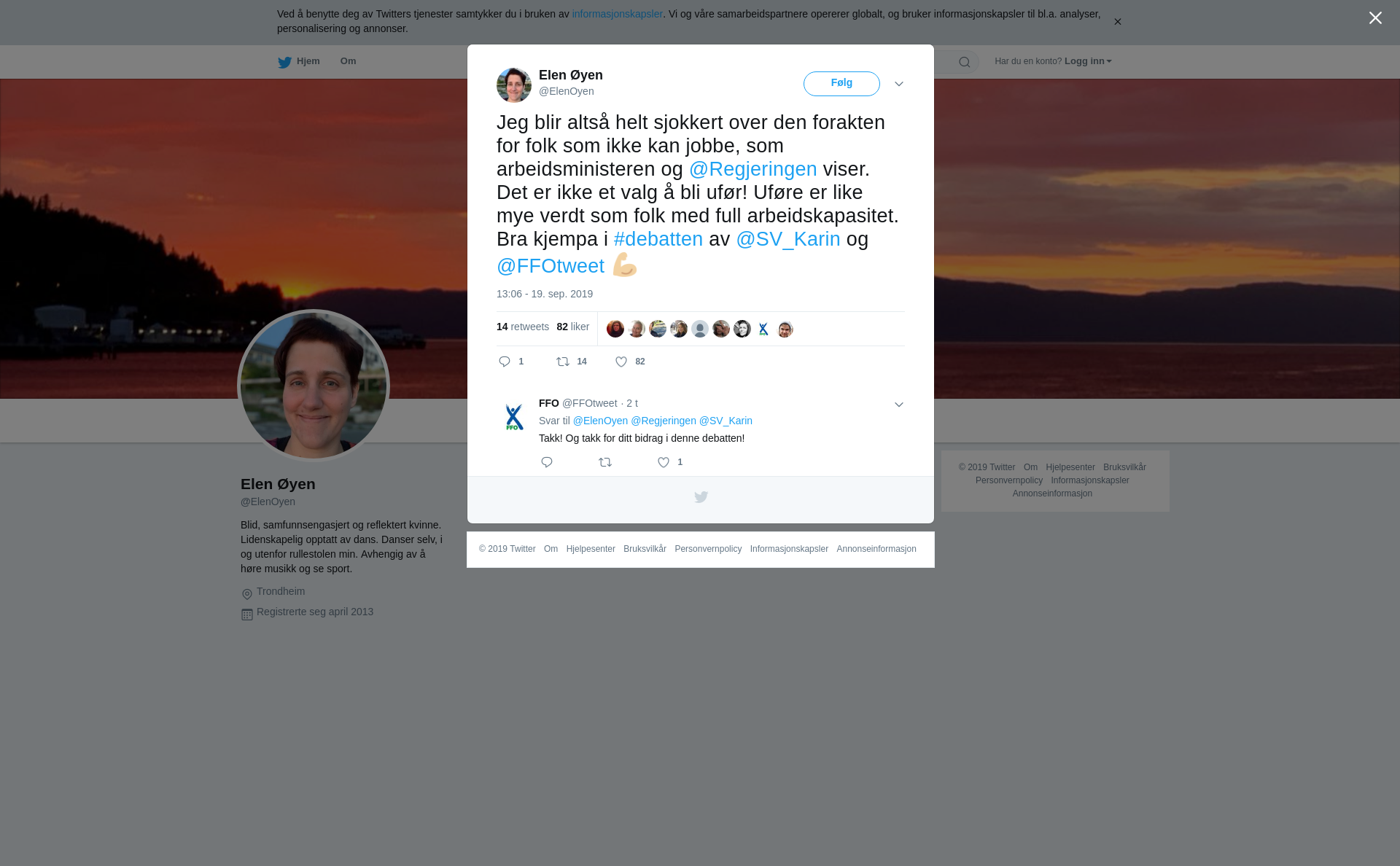 RT @ElenOyen: Jeg blir altså helt sjokkert over den forakten for folk som ikke kan jobbe, som arbeidsministeren og @Regjeringen viser. Det er ikke et valg å bli ufør! Uføre er like mye verdt som folk med full arbeidskapasitet. Bra kjempa i #debatten av @SV_Karin og @FFOtweet 💪🏼