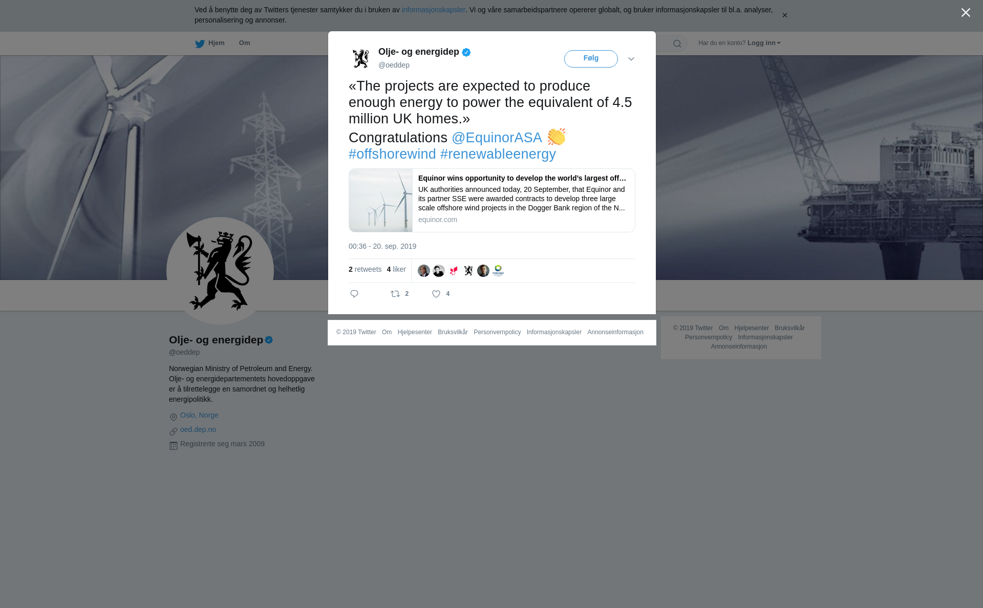 UK authorities announced today, 20 September, that Equinor and its partner SSE were awarded contracts to develop three large scale offshore wind projects in the Dogger Bank region of the North Sea.