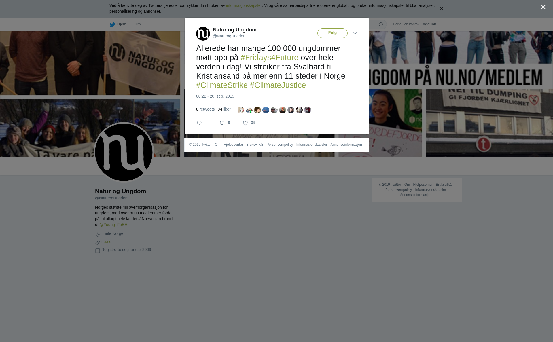 RT @NaturogUngdom: Allerede har mange 100 000 ungdommer møtt opp på #Fridays4Future over hele verden i dag! Vi streiker fra Svalbard til Kristiansand på mer enn 11 steder i Norge #ClimateStrike #ClimateJustice