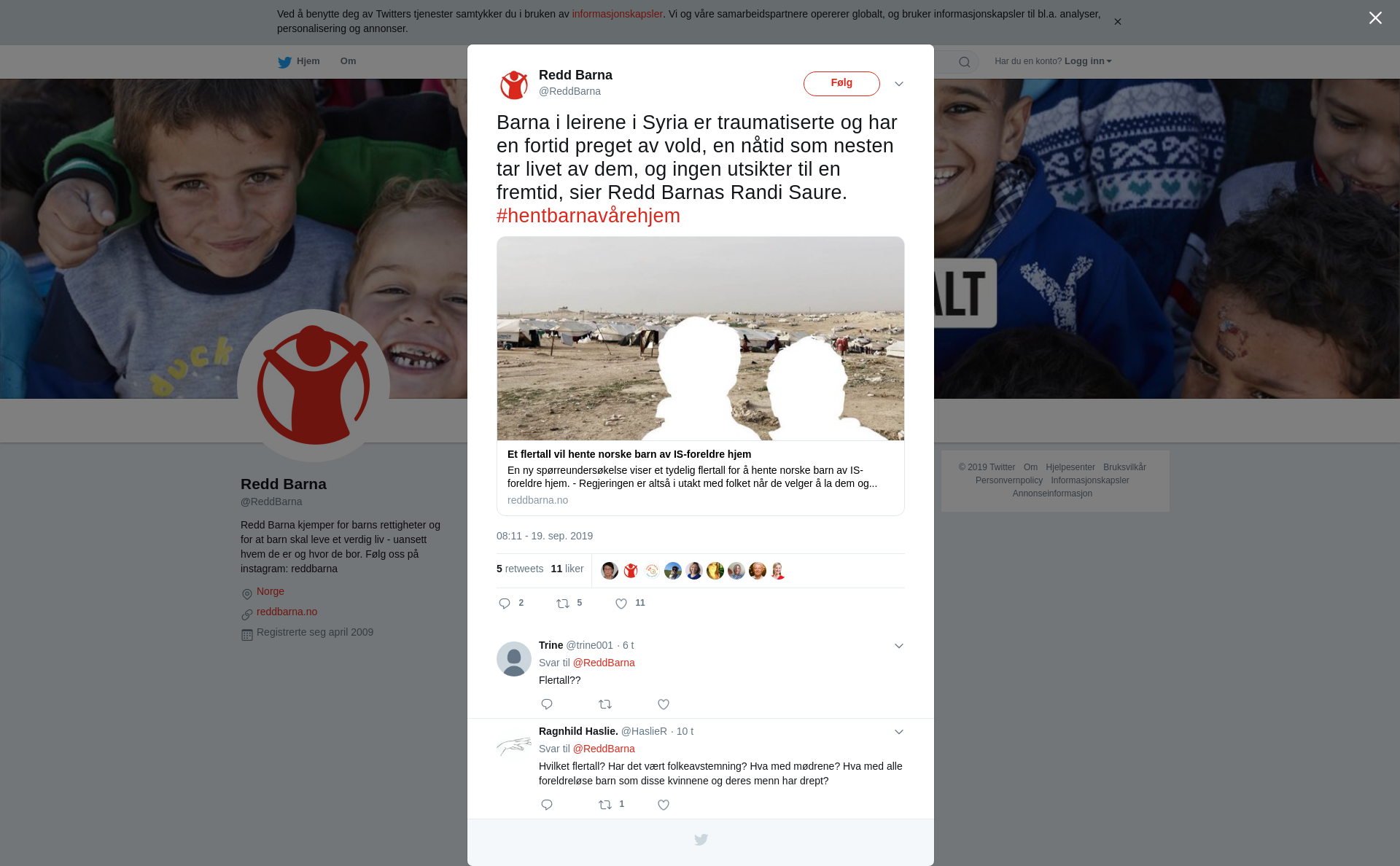 RT @ReddBarna: Barna i leirene i Syria er traumatiserte og har en fortid preget av vold, en nåtid som nesten tar livet av dem, og ingen utsikter til en fremtid, sier Redd Barnas Randi Saure. #hentbarnavårehjem https://t.co/C8eGQDJqlI