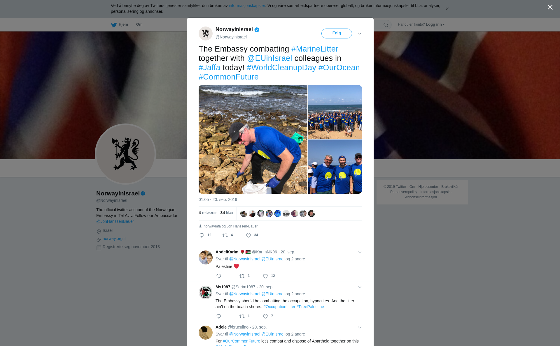 RT @NorwayinIsrael: The Embassy combatting #MarineLitter together with @EUinIsrael colleagues in #Jaffa today! #WorldCleanupDay #OurOcean #CommonFuture https://t.co/IqUXLUpRSI