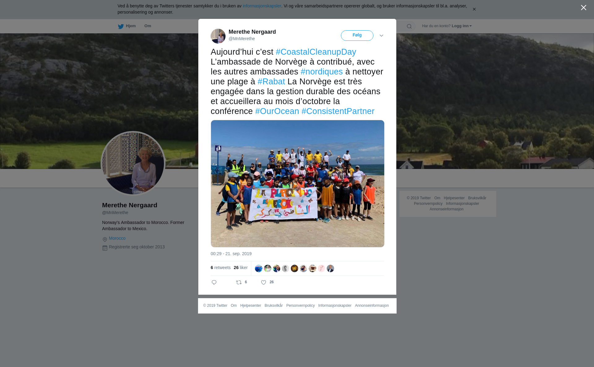 RT @MnMerethe: Aujourd’hui c’est #CoastalCleanupDay L’ambassade de Norvège à contribué, avec les autres ambassades #nordiques à nettoyer une plage à #Rabat La Norvège est très engagée dans la gestion durable des océans et accueillera au mois d’octobre la conférence #OurOcean #ConsistentPartner https://t.co/z8qmlaG8LP
