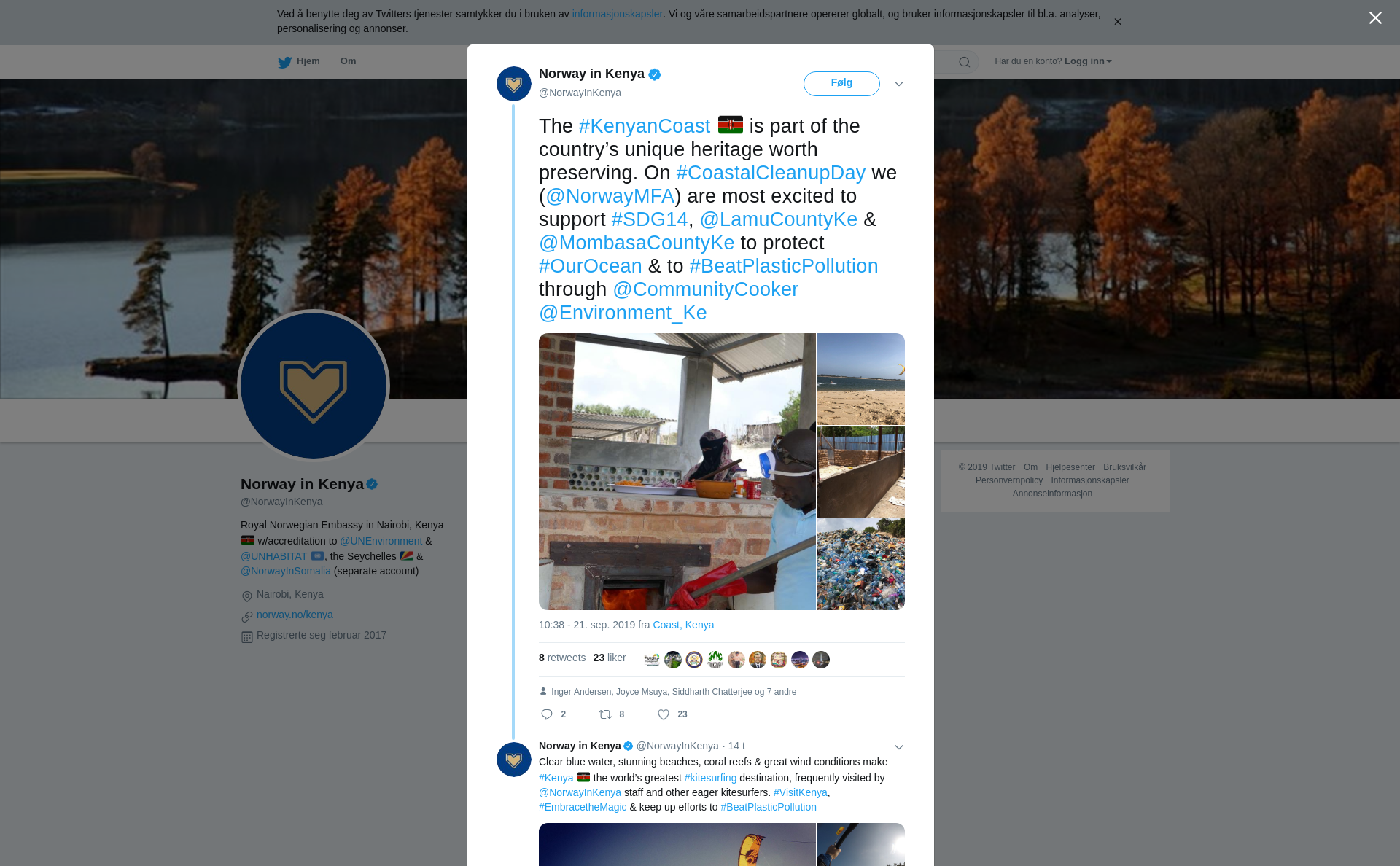 RT @NorwayInKenya: The #KenyanCoast 🇰🇪 is part of the country’s unique heritage worth preserving. On #CoastalCleanupDay we (@NorwayMFA) are most excited to support #SDG14, @LamuCountyKe & @MombasaCountyKe to protect #OurOcean & to #BeatPlasticPollution through @CommunityCooker @Environment_Ke https://t.co/9JjfeZVdMt