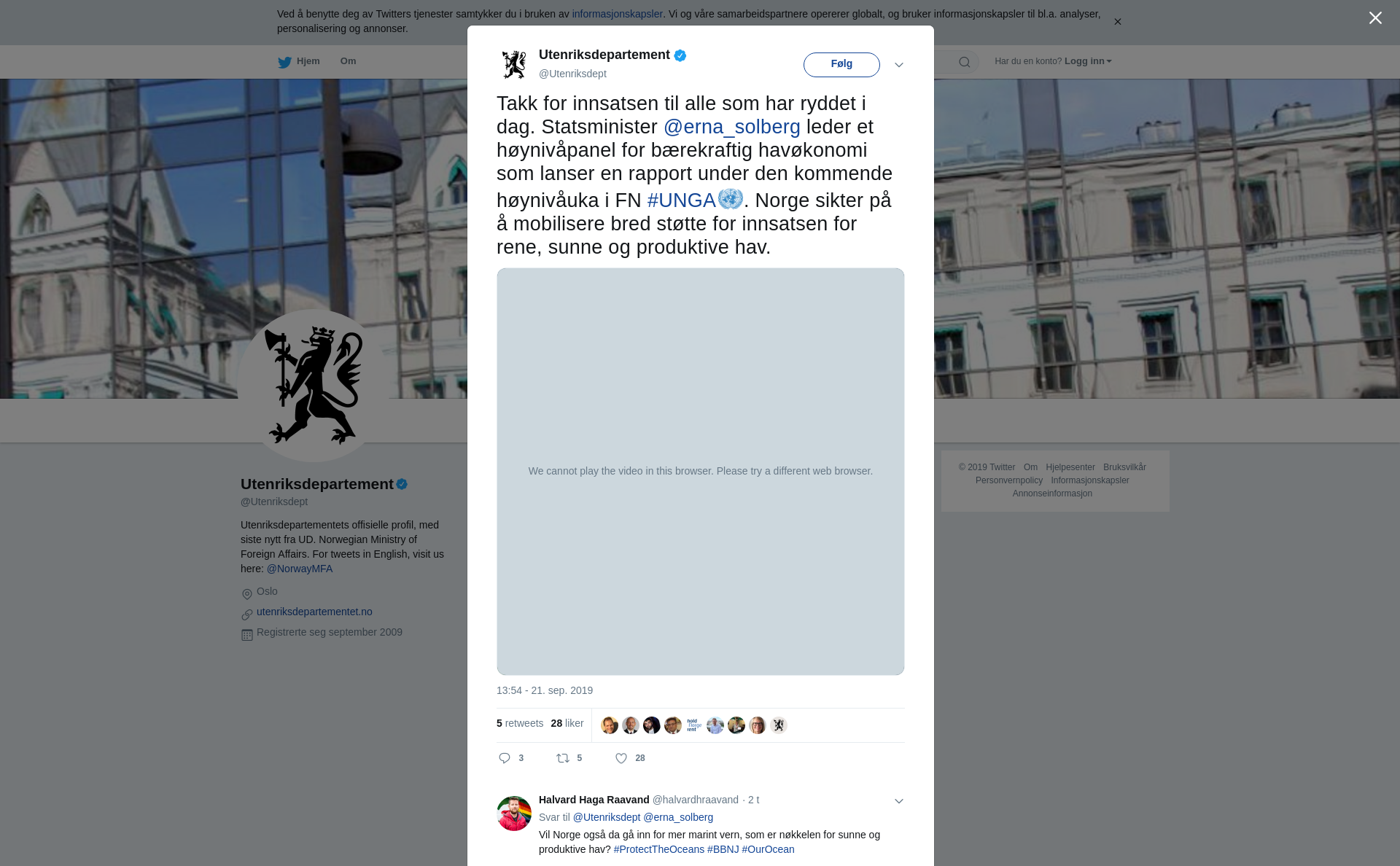 RT @Utenriksdept: Takk for innsatsen til alle som har ryddet i dag. Statsminister @erna_solberg leder et høynivåpanel for bærekraftig havøkonomi som lanser en rapport under den kommende høynivåuka i FN #UNGA. Norge sikter på å mobilisere bred støtte for innsatsen for rene, sunne og produktive hav. https://t.co/SwFShcAF9i