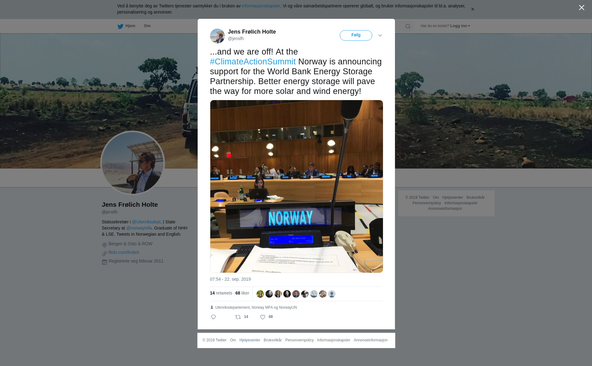 RT @jensfh: ...and we are off! At the #ClimateActionSummit Norway is announcing support for the World Bank Energy Storage Partnership. Better energy storage will pave the way for more solar and wind energy! https://t.co/HYQjtNkxZn