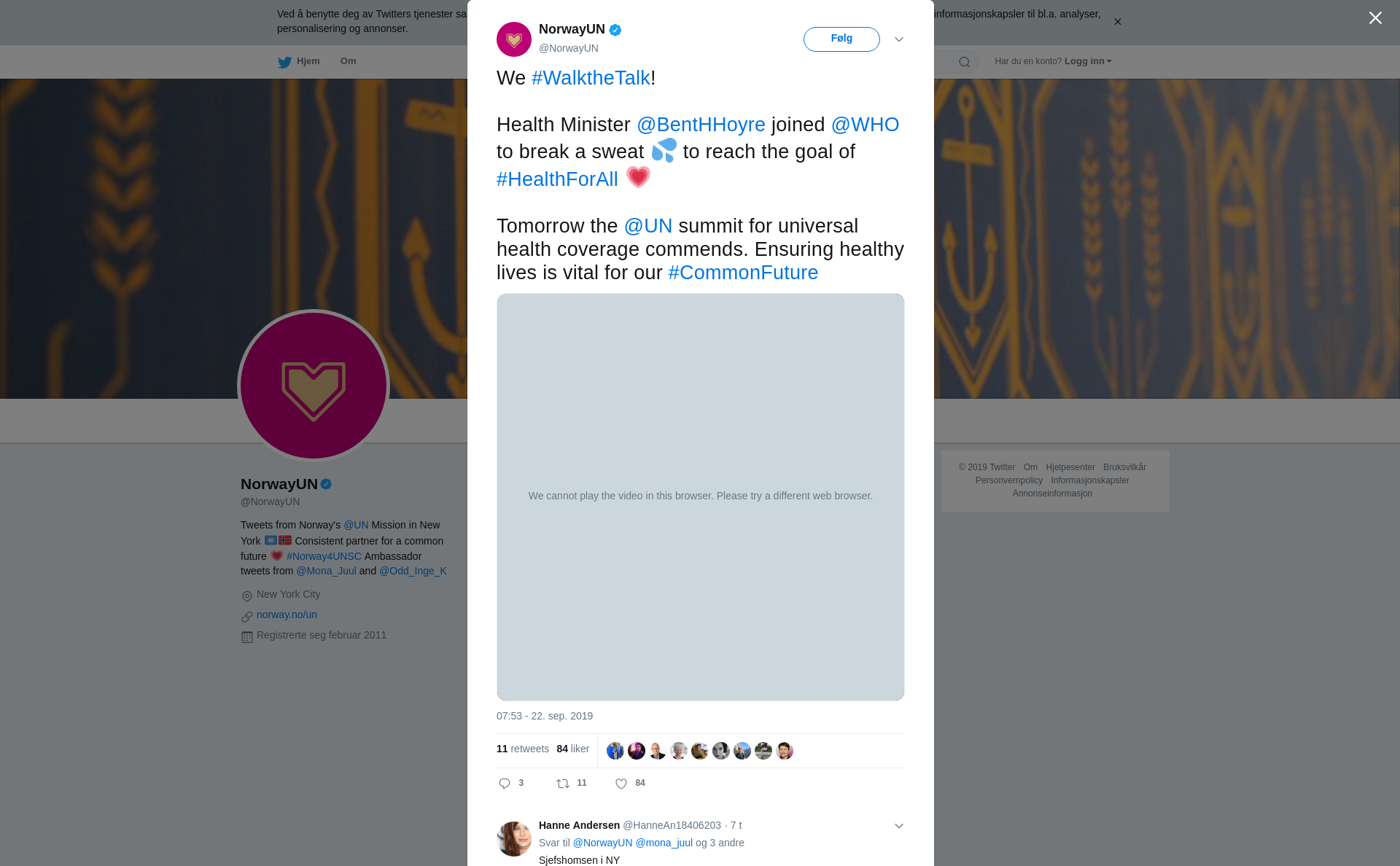 RT @NorwayUN: We #WalktheTalk! Health Minister @BentHHoyre joined @WHO to break a sweat 💦 to reach the goal of #HealthForAll 💗 Tomorrow t…