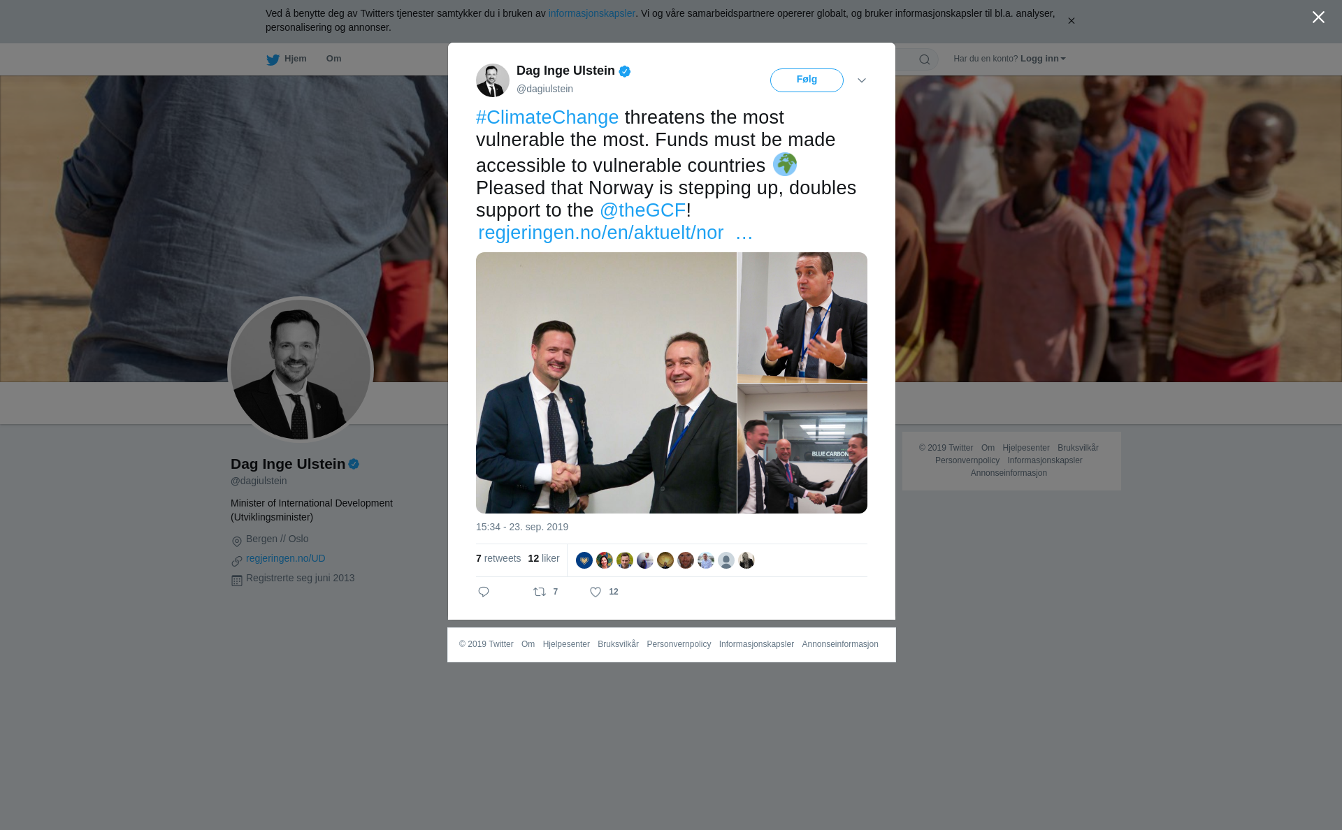 ‘Global climate change is one of the greatest challenges we are facing, and it is undermining the progress made in areas such as poverty reduction, education and health,’ said Prime Minister Erna Solberg.