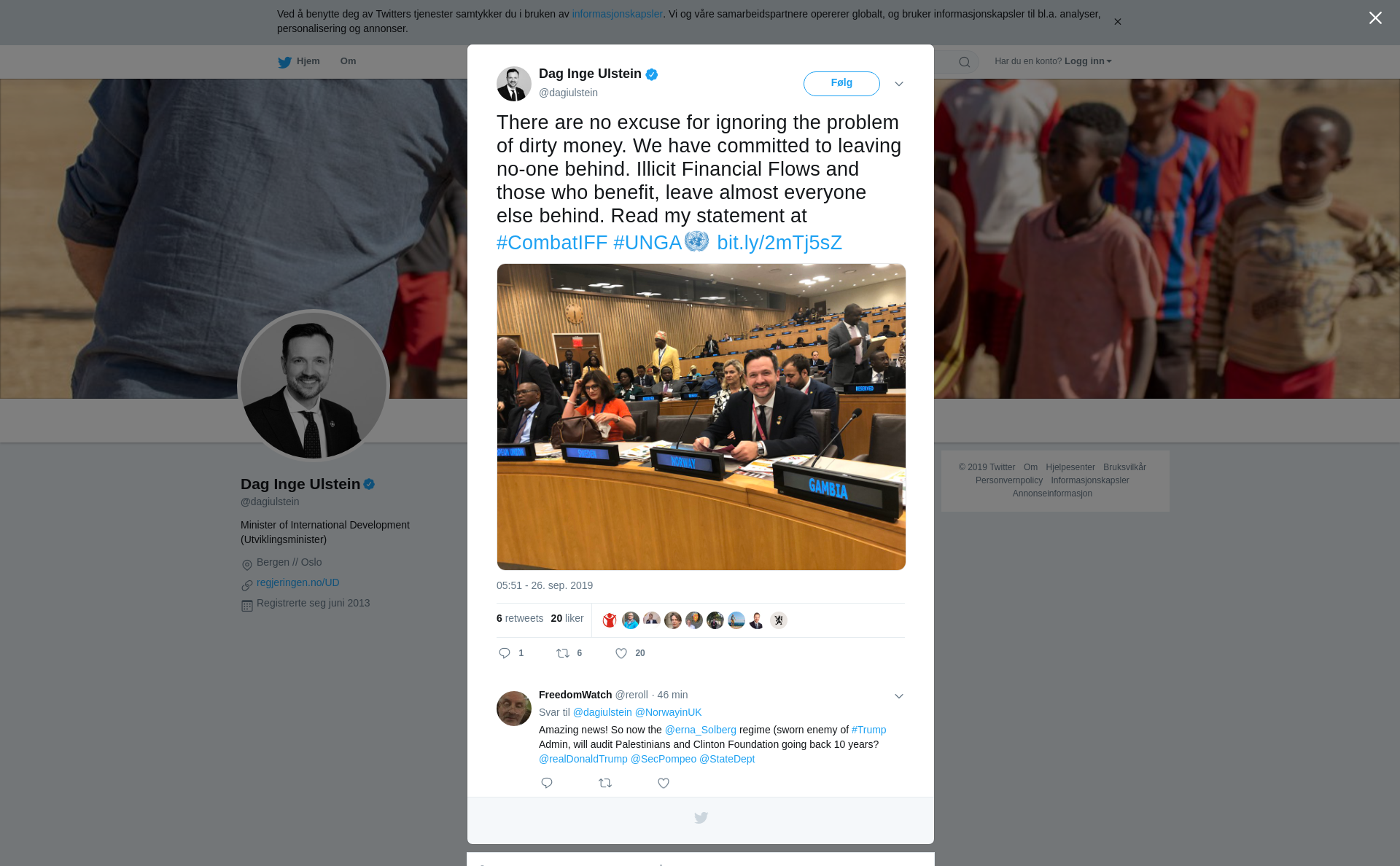 Utviklingsminister Dag-Inge Ulsteins innlegg ved arrangementet "Promotion of International Cooperation to Combat Illicit Financial Flows and Strenghten Good Practices on Asset Recovery and Return to Foster Sustainable Development" - under FNs høynivåuke.