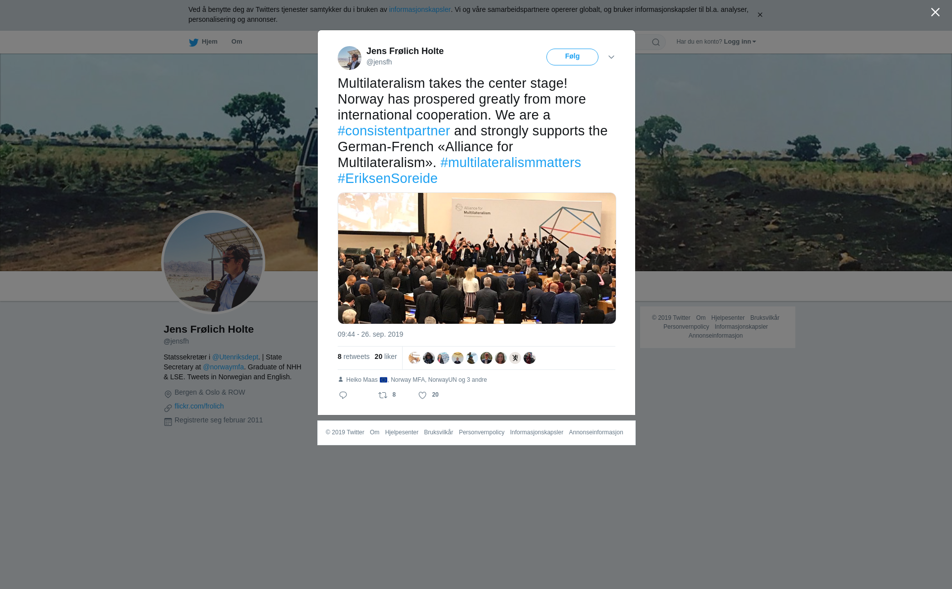 RT @jensfh: Multilateralism takes the center stage! Norway has prospered greatly from more international cooperation. We are a #consistentpartner and strongly supports the German-French «Alliance for Multilateralism». #multilateralismmatters #EriksenSoreide https://t.co/hZBFSU9agj
