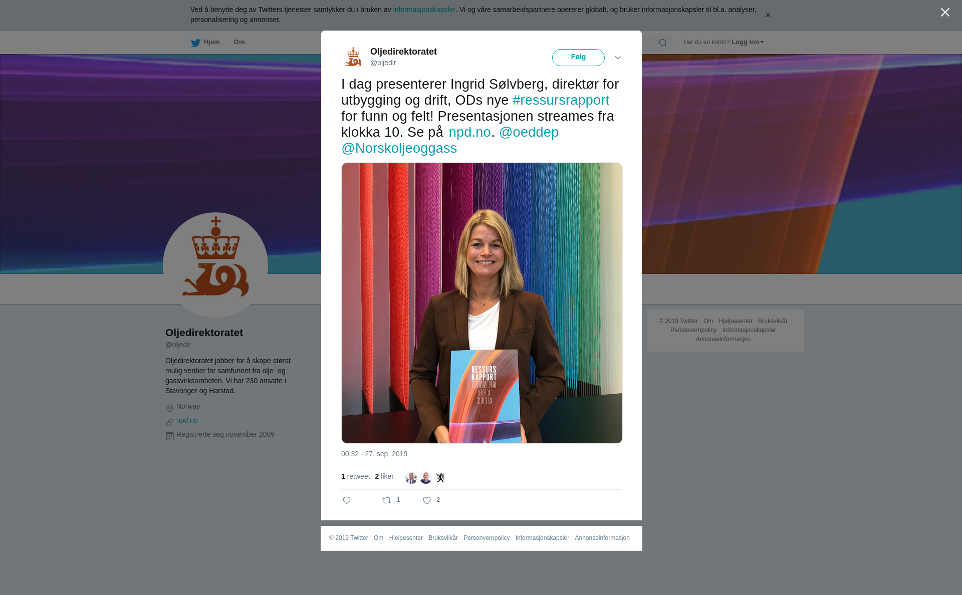 RT @oljedir: I dag presenterer Ingrid Sølvberg, direktør for utbygging og drift, ODs nye #ressursrapport for funn og felt! Presentasjonen streames fra klokka 10. Se på https://t.co/zb4rEqapnv. @oeddep @Norskoljeoggass https://t.co/NcyK9t8LXJ