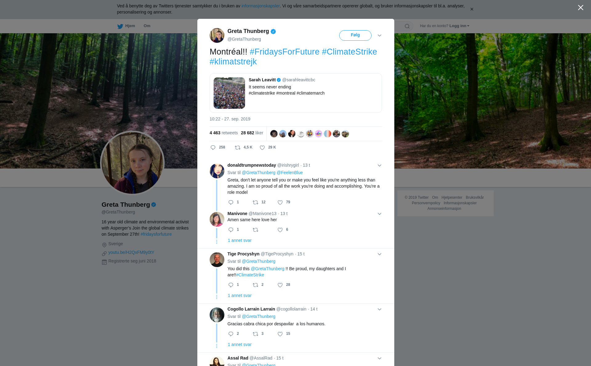 RT @GretaThunberg: Montréal!! #FridaysForFuture #ClimateStrike #klimatstrejk https://t.co/5PyZEu0ARH