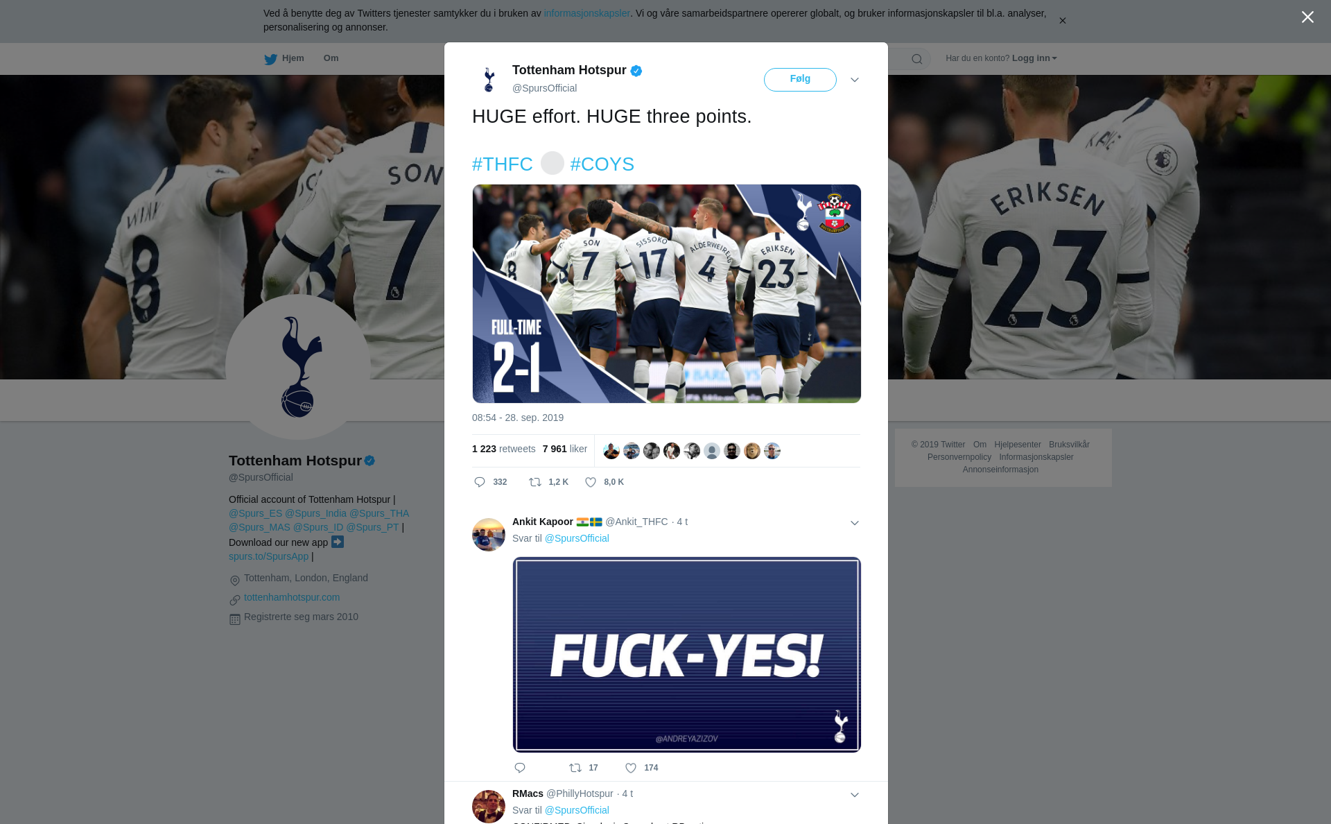 RT @SpursOfficial: HUGE effort. HUGE three points. #THFC ⚪️ #COYS https://t.co/0KwEtRR3rQ