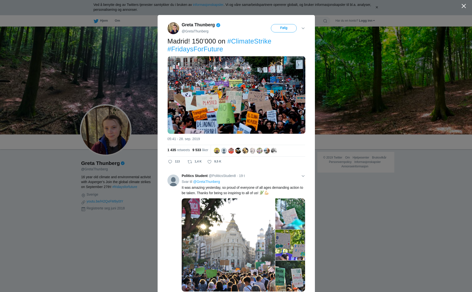 RT @GretaThunberg: Madrid! 150’000 on #ClimateStrike #FridaysForFuture https://t.co/CeLi5DuBov