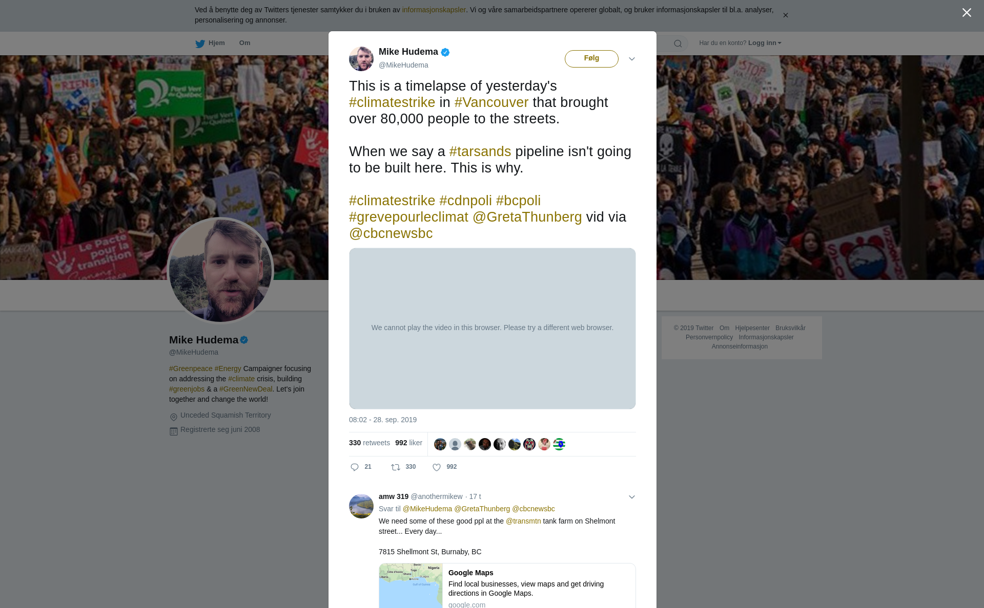 RT @MikeHudema: This is a timelapse of yesterday's #climatestrike in #Vancouver that brought over 80,000 people to the streets. When we sa…