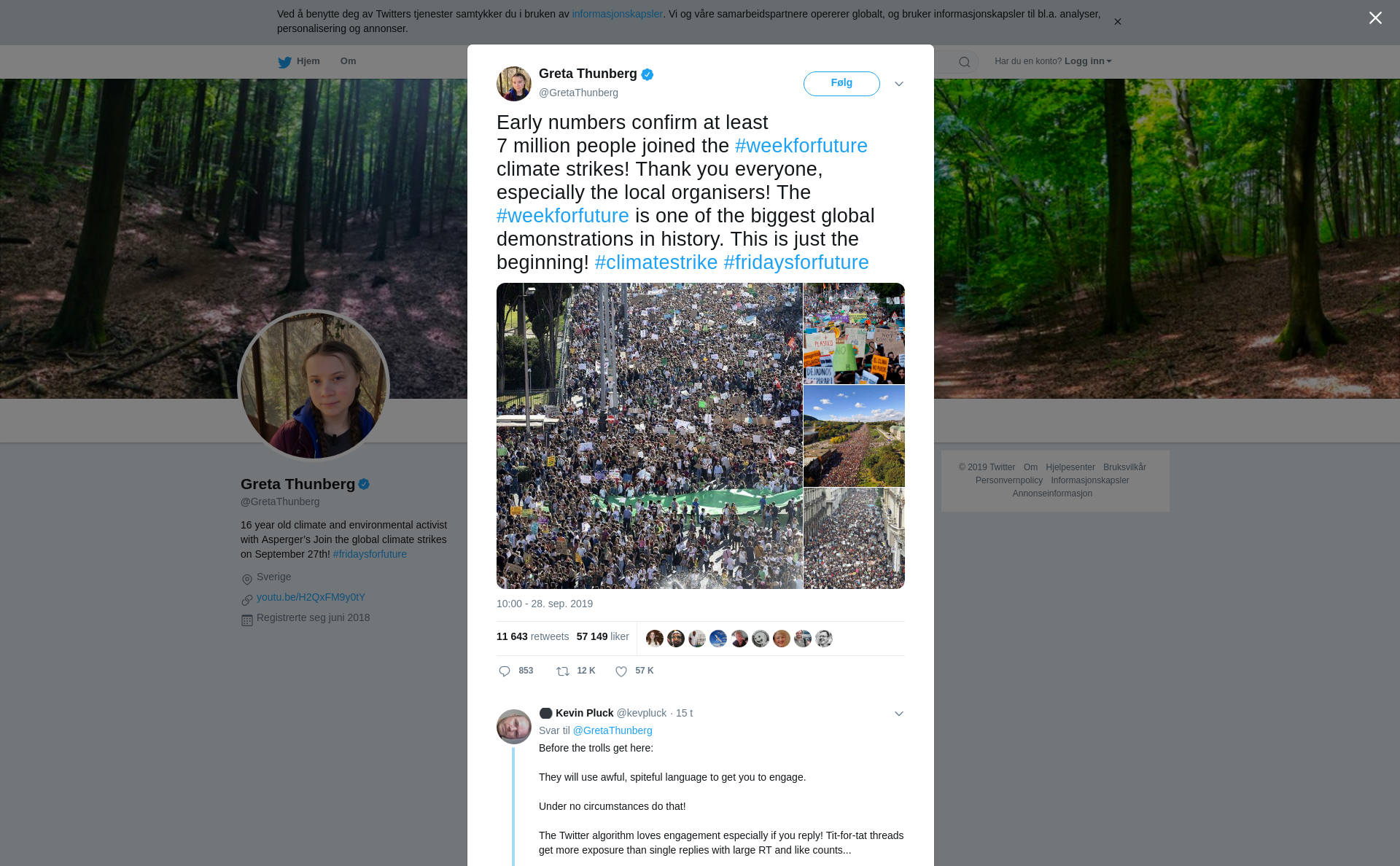 RT @GretaThunberg: Early numbers confirm at least 7 million people joined the #weekforfuture climate strikes! Thank you everyone, especiall…