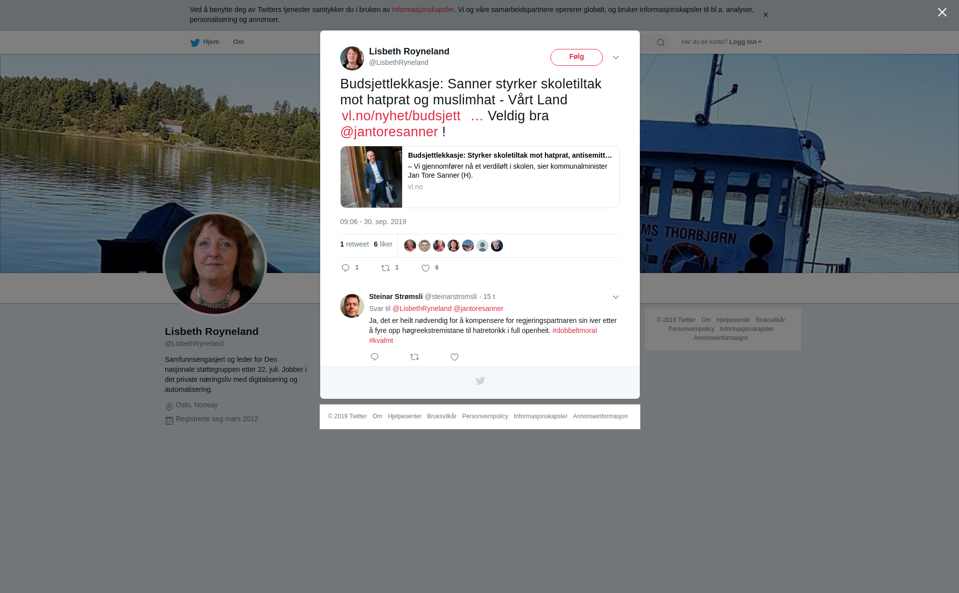 RT @LisbethRyneland: Budsjettlekkasje: Sanner styrker skoletiltak mot hatprat og muslimhat - Vårt Land https://t.co/f1igEwOOsc Veldig bra @jantoresanner !