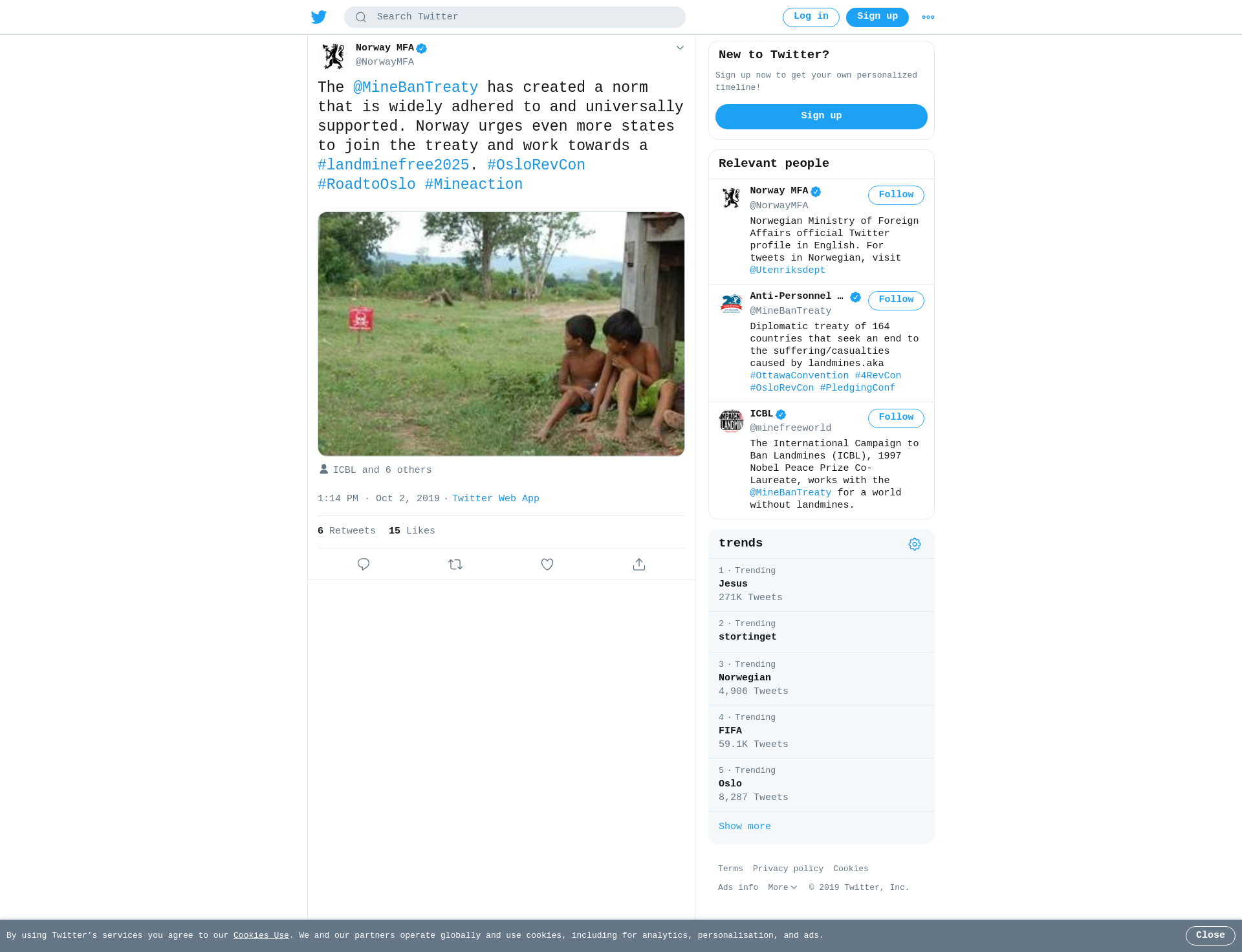 The @MineBanTreaty has created a norm that is widely adhered to and universally supported. Norway urges even more states to join the treaty and work towards a #landminefree2025. #OsloRevCon #RoadtoOslo #Mineaction https://t.co/CMdJHSJmbi