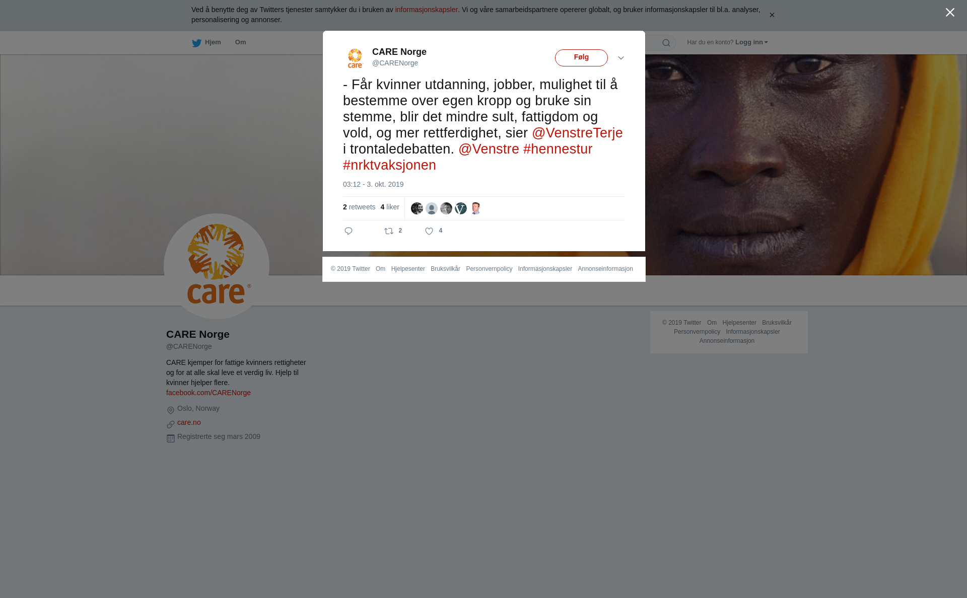 RT @CARENorge: - Får kvinner utdanning, jobber, mulighet til å bestemme over egen kropp og bruke sin stemme, blir det mindre sult, fattigdom og vold, og mer rettferdighet, sier @VenstreTerje i trontaledebatten. @Venstre #hennestur #nrktvaksjonen
