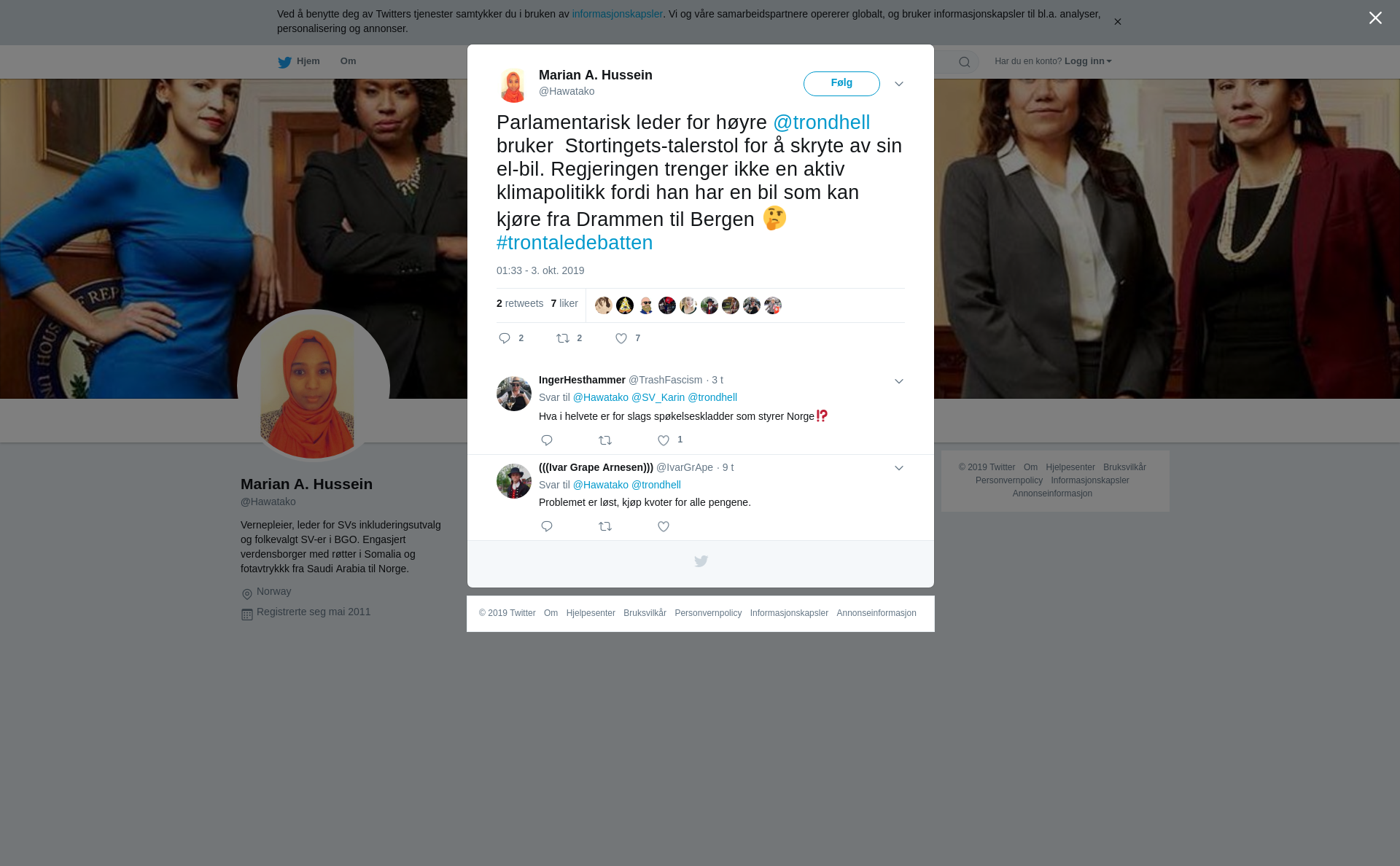 RT @Hawatako: Parlamentarisk leder for høyre @trondhell bruker Stortingets-talerstol for å skryte av sin el-bil. Regjeringen trenger ikke en aktiv klimapolitikk fordi han har en bil som kan kjøre fra Drammen til Bergen 🤔 #trontaledebatten