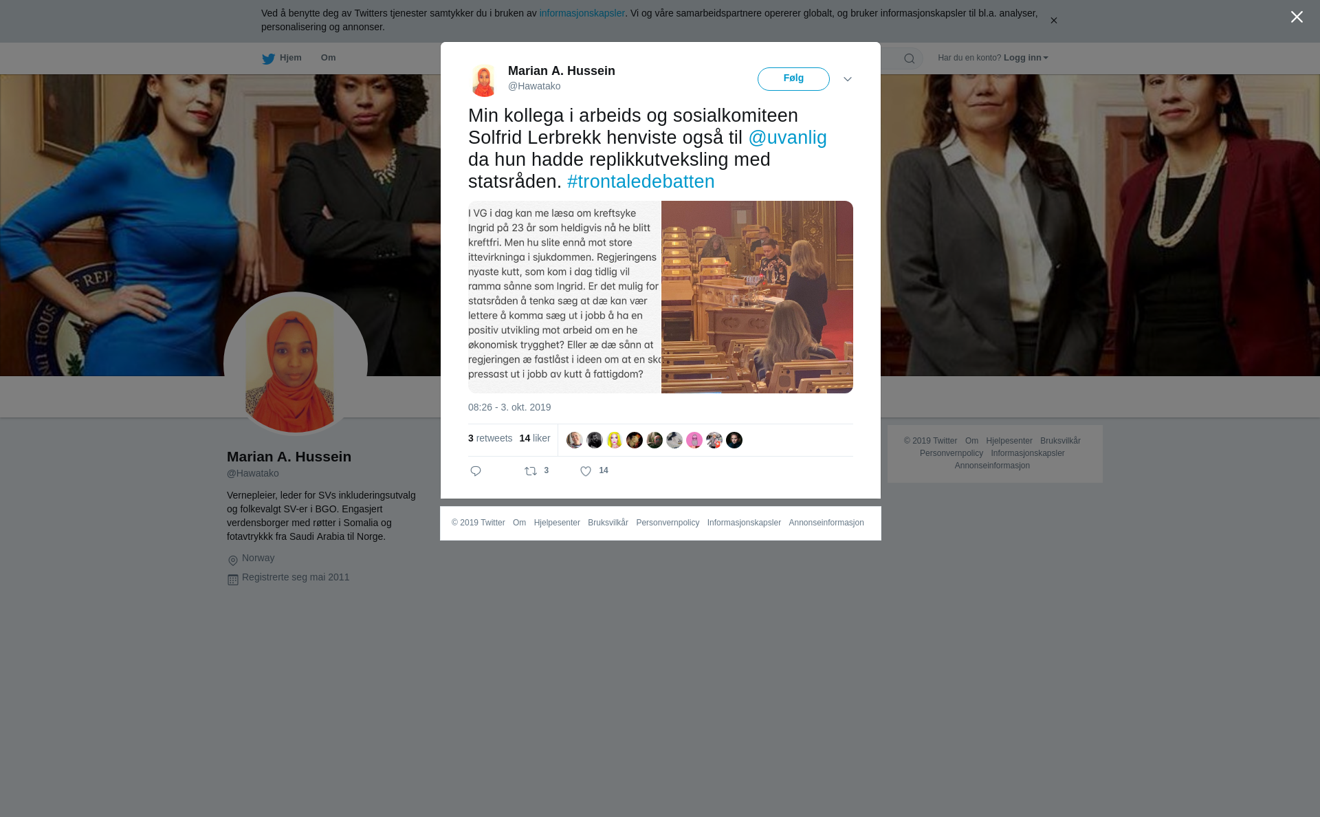 RT @Hawatako: Min kollega i arbeids og sosialkomiteen Solfrid Lerbrekk henviste også til @uvanlig da hun hadde replikkutveksling med statsråden. #trontaledebatten https://t.co/E4oCewaIDK
